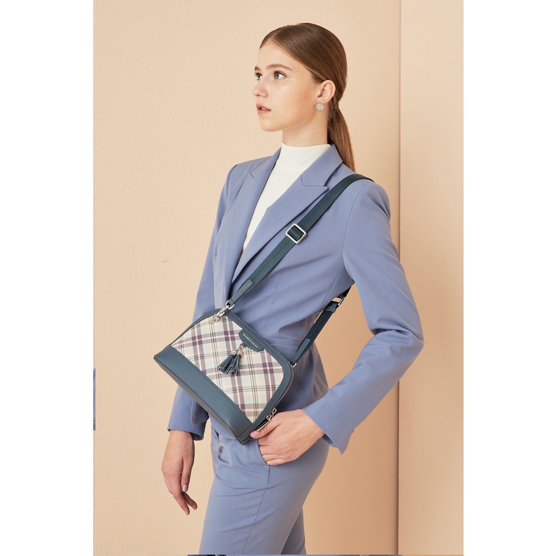 【金安德森】TASSEL 經典格紋貝殼斜側包-藍色