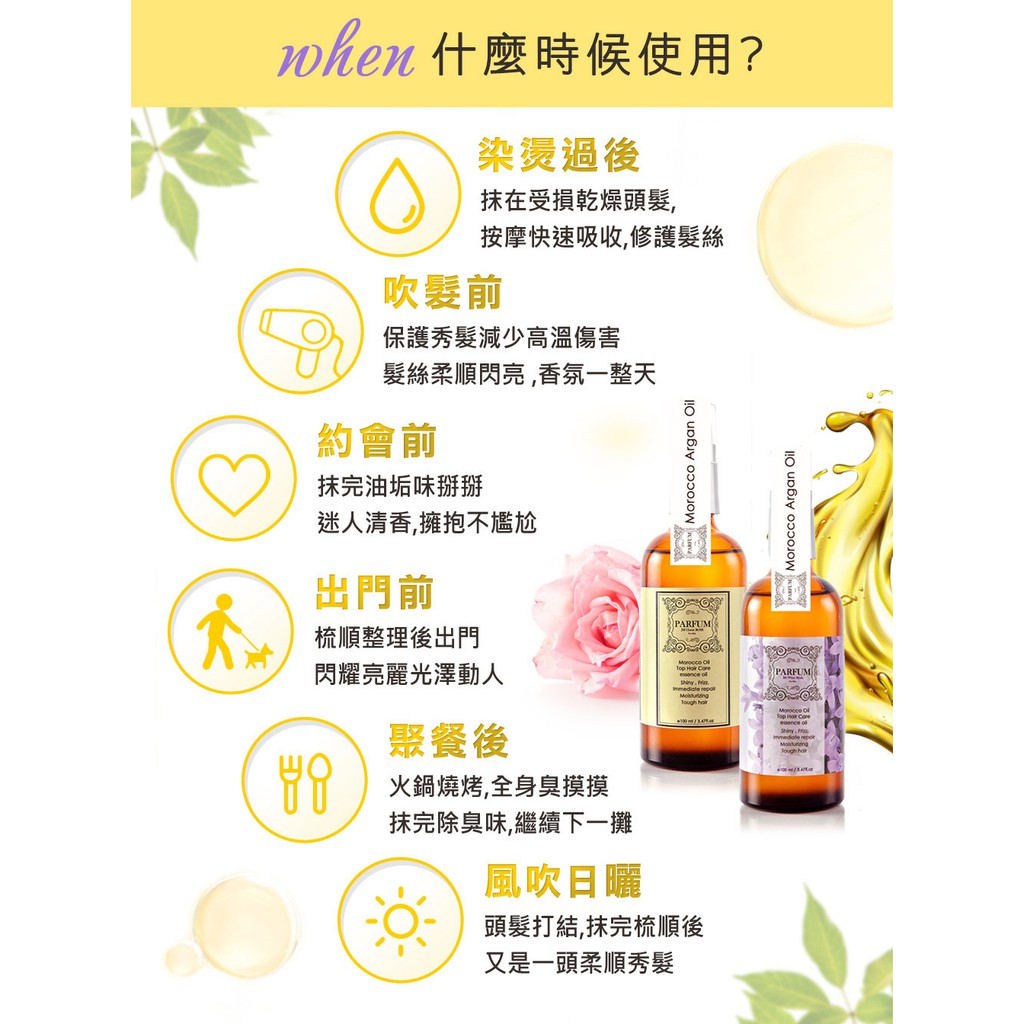 Parfum巴黎帕芬|香水護髮油【買一送三】堅果油 免沖洗髮油 摩洛哥油 美髮 玫瑰 小蒼蘭