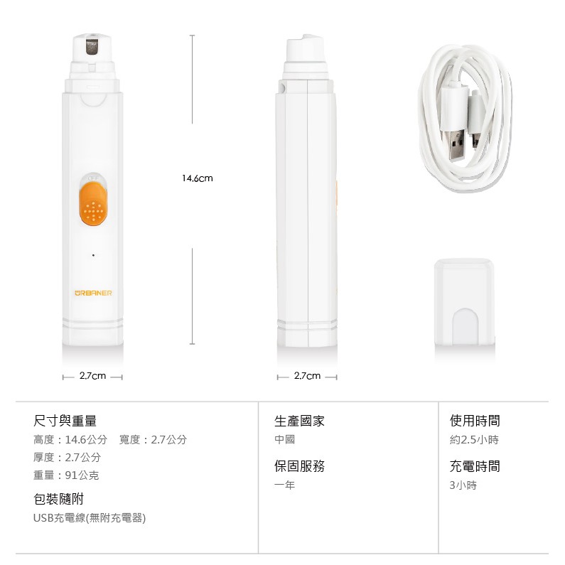 URBANER奧本寵物 USB充電式電動磨指甲器 MB-011 指甲剪 磨甲器 狗 指甲 奧本電剪
