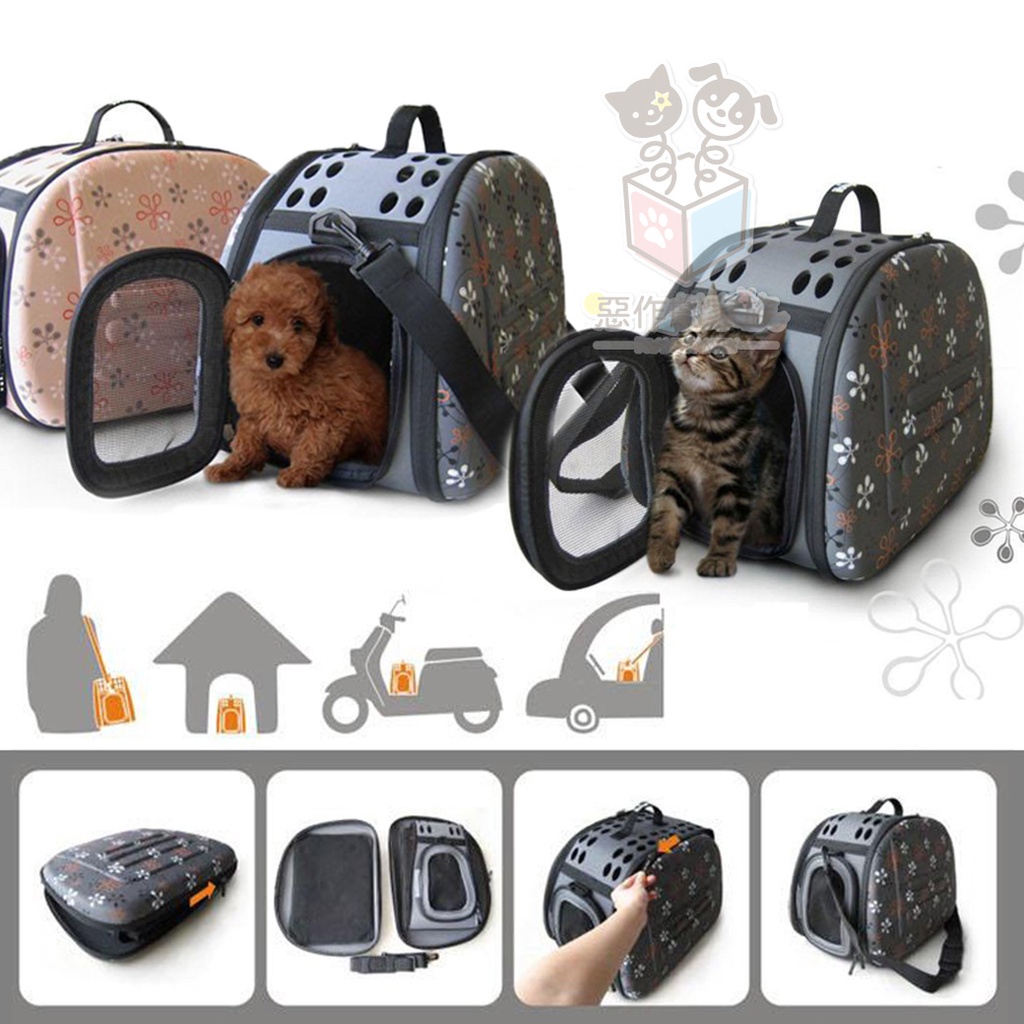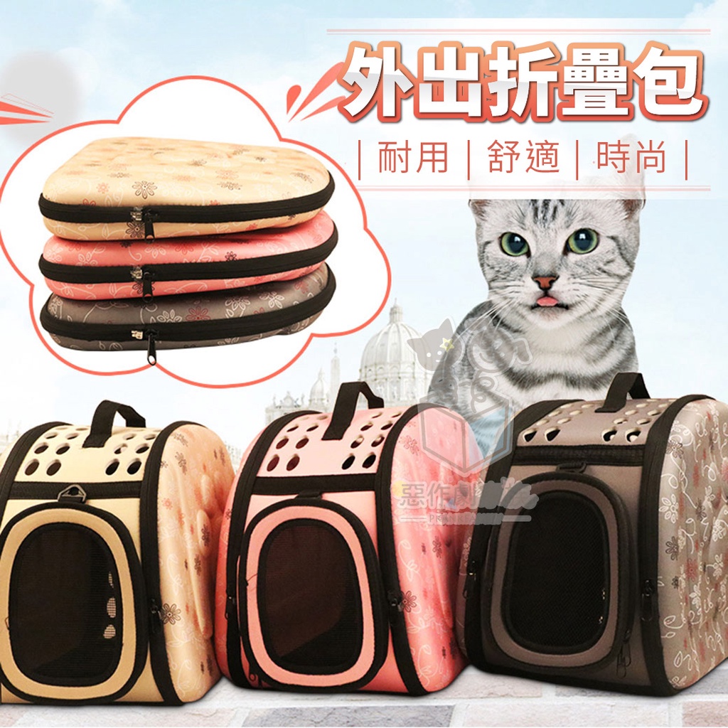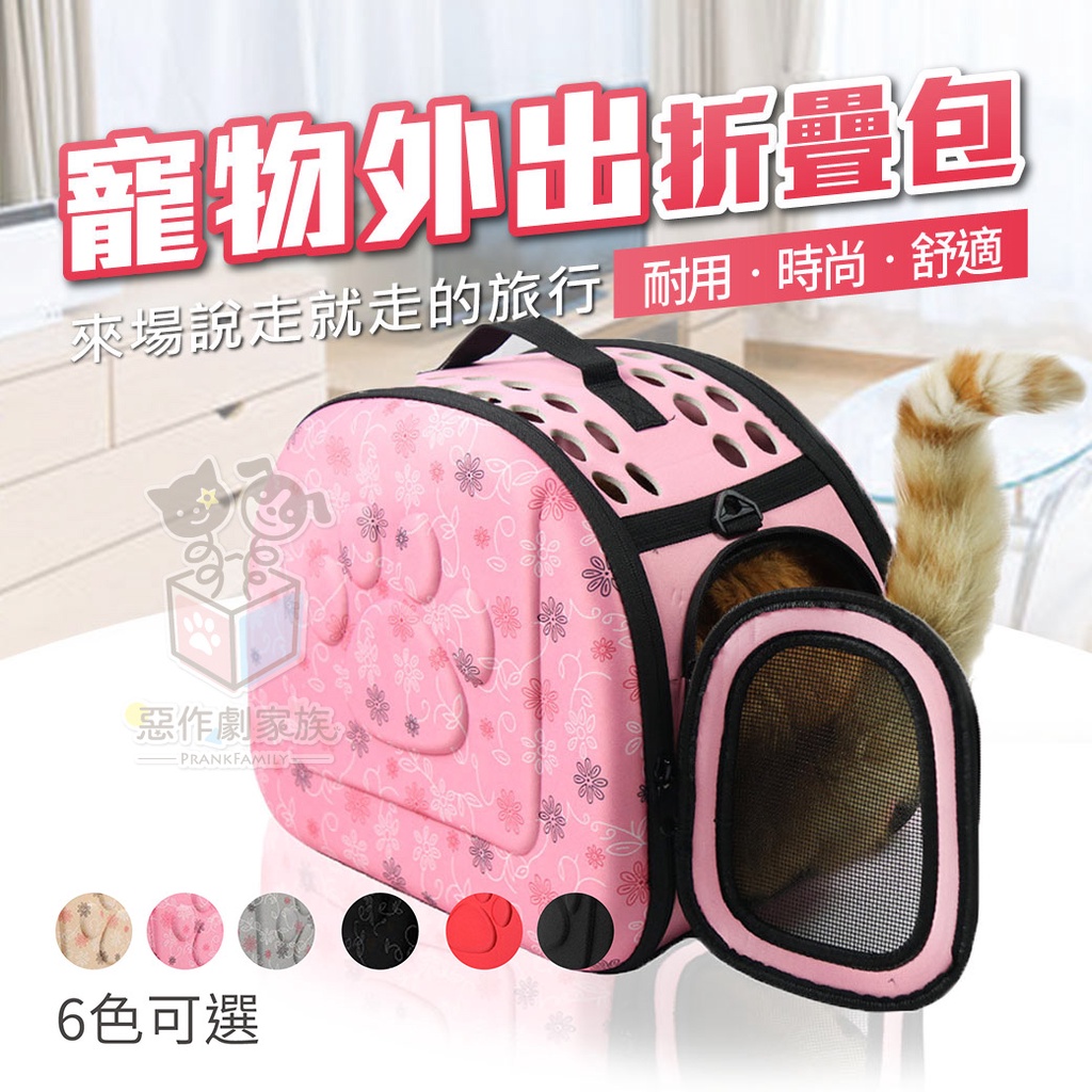 【惡作劇家族】彩色印花寵物外出摺疊包(M) 立體折疊包 寵物外出包 寵物運輸籠 外出籠 外出包 寵物提籠 外出提籃