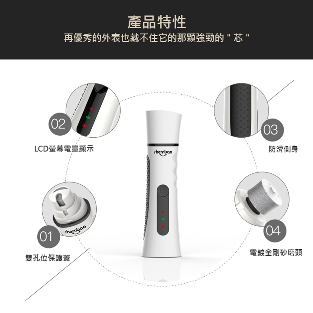 【神寶寵物】靜音充電式磨甲器 PNG-008 基礎 美容 鋰電池 充電式 磨甲機 指甲修剪 J00010