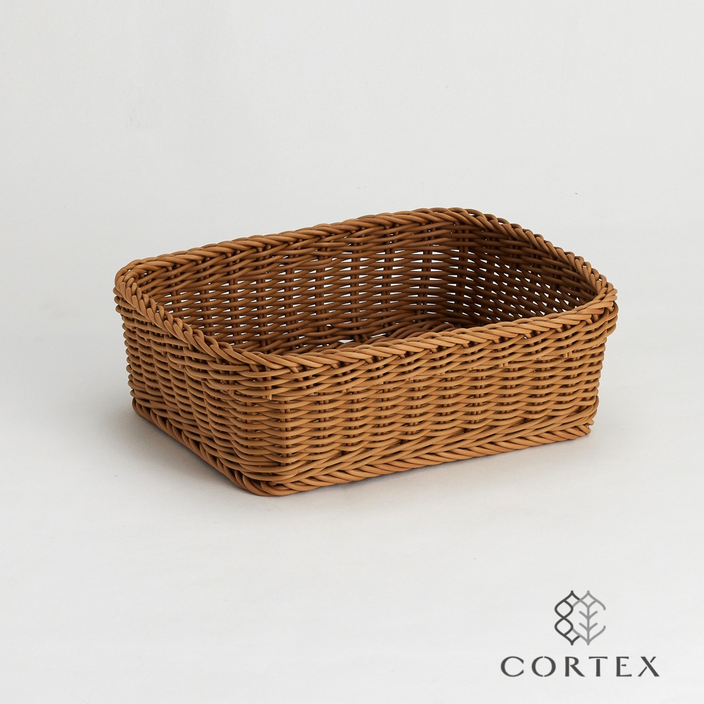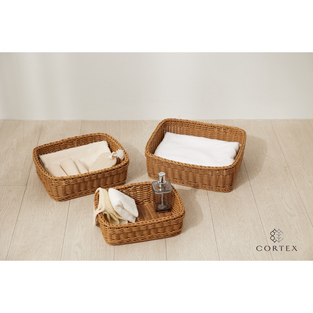 CORTEX 收納籃 仿籐籃 長方型W38 卡其色
