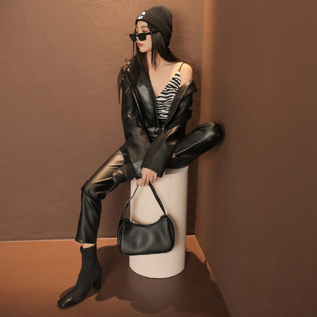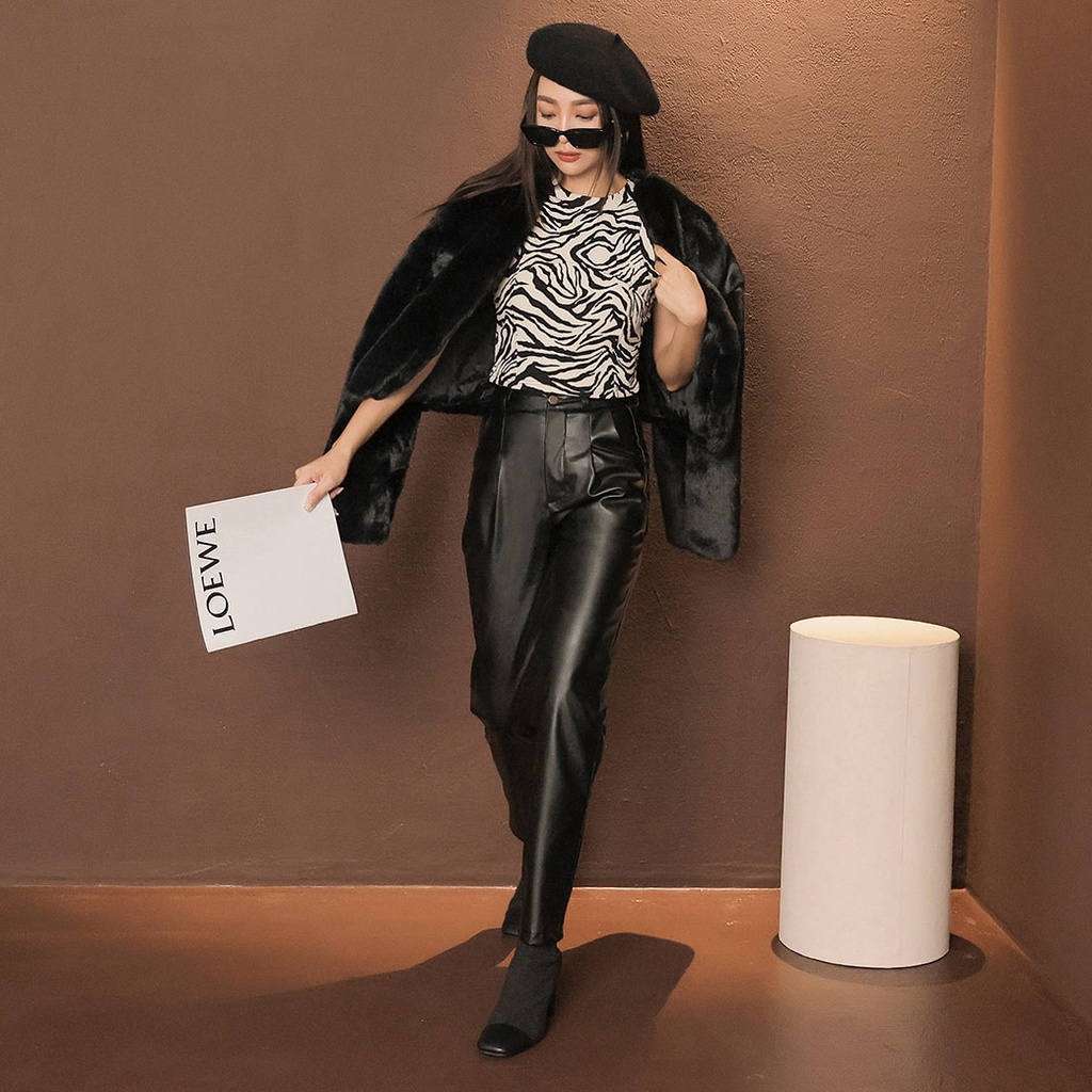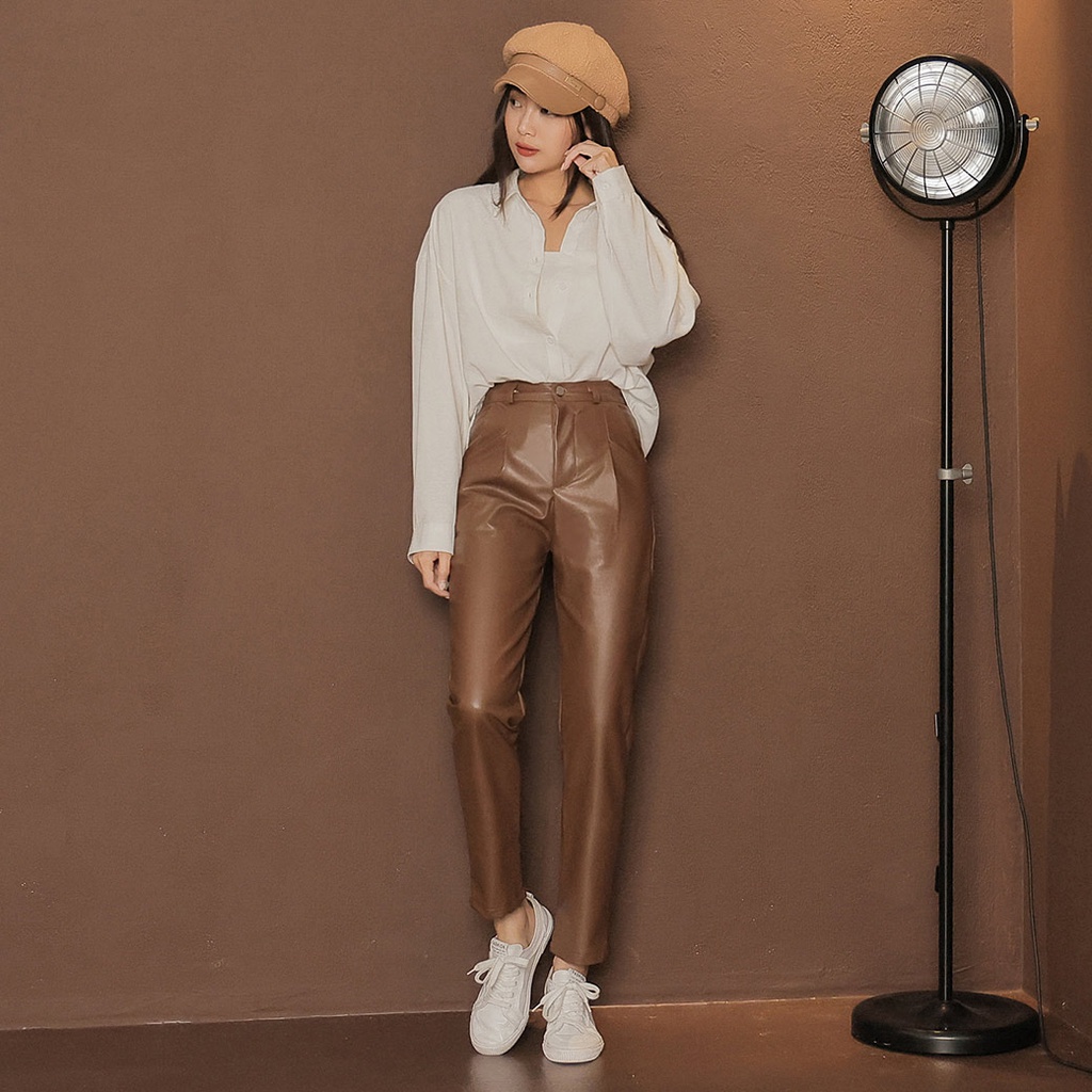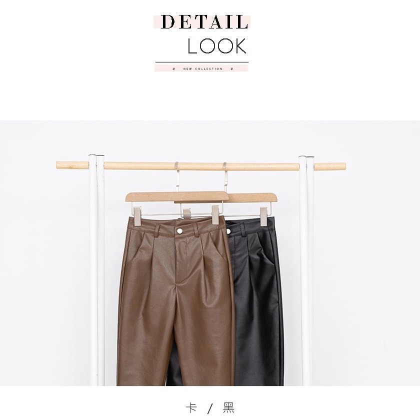 IN SHOP 俐落打摺皮革直筒褲(偏小)-共2色【KT201161】