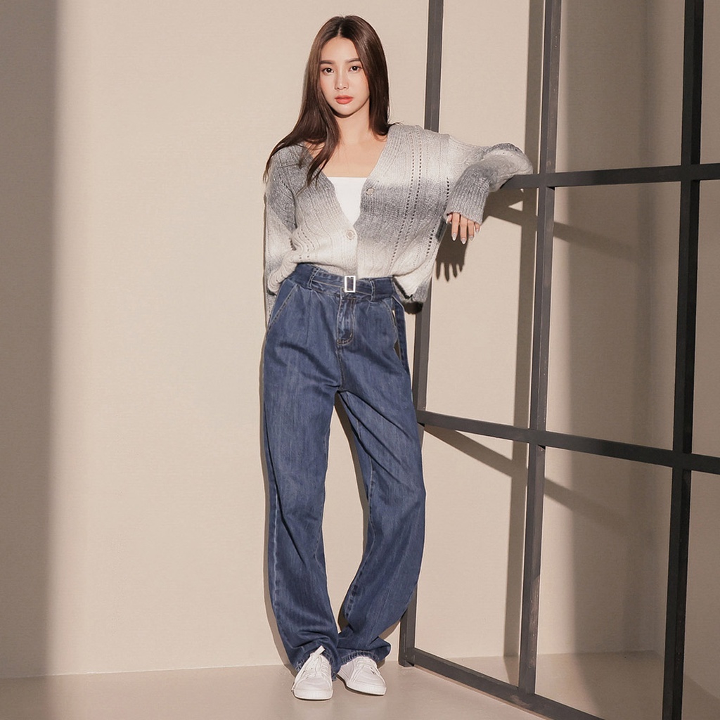 IN SHOP 打褶牛仔寬褲(附腰帶)【KT201105】