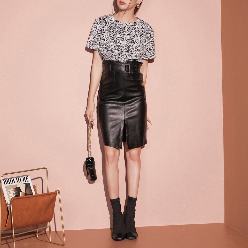 IN SHOP 開衩皮革窄裙(附腰帶)【KT21612】
