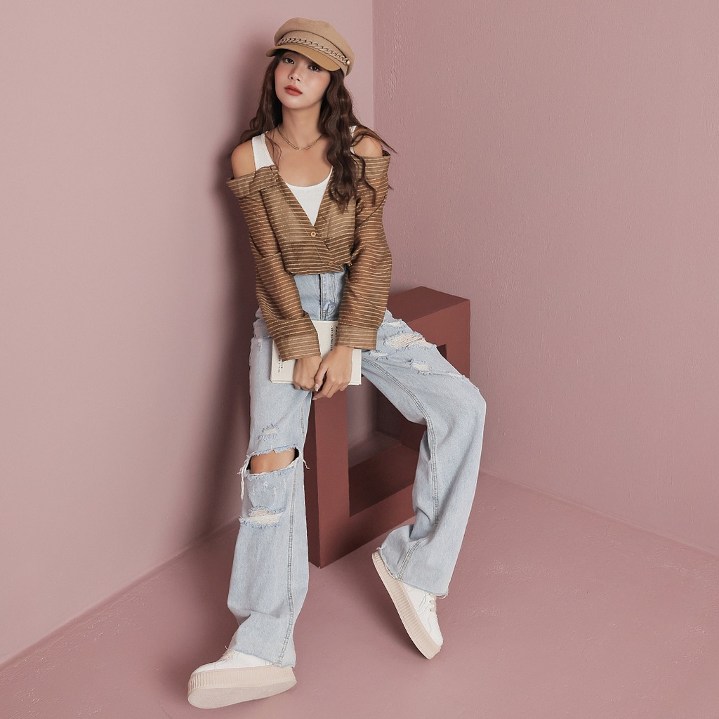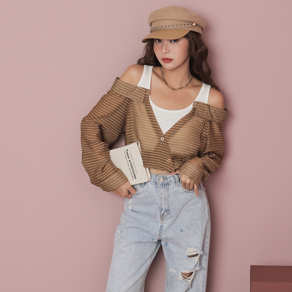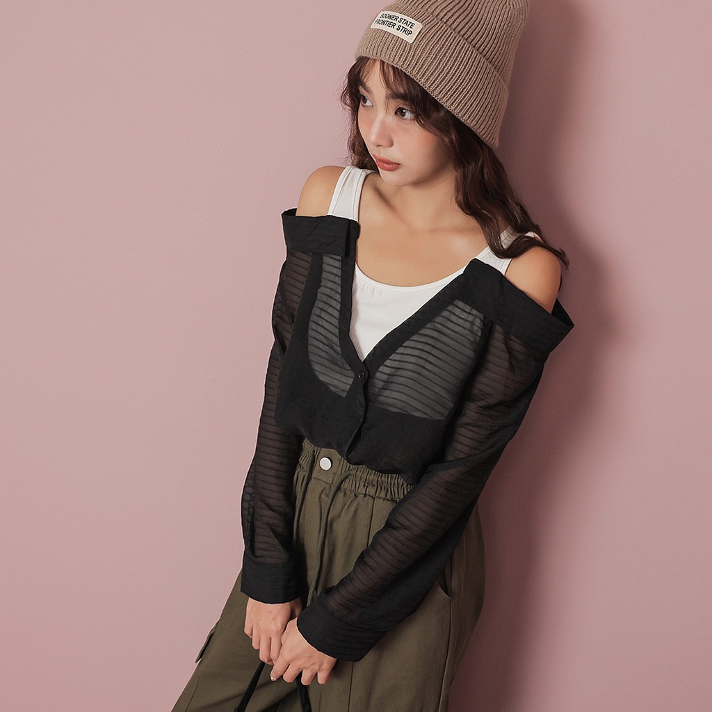 IN SHOP 橫紋挖肩假兩件襯衫-共3色【KT222784】