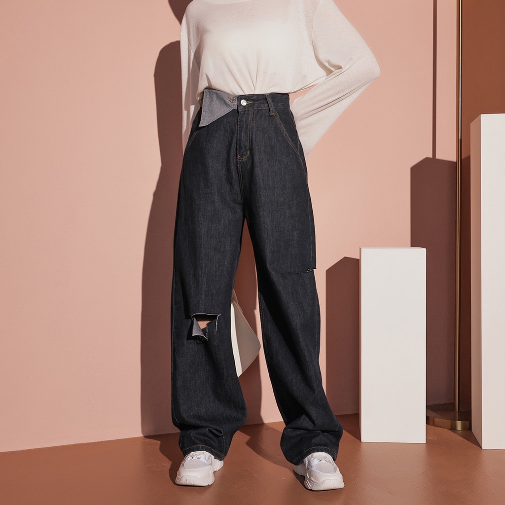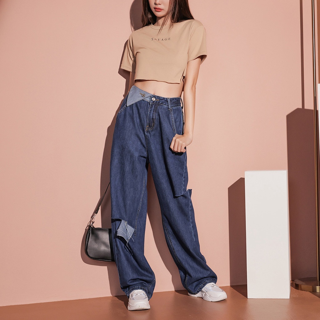 IN SHOP 翻領褲頭破洞牛仔褲-共2色【KT201111】