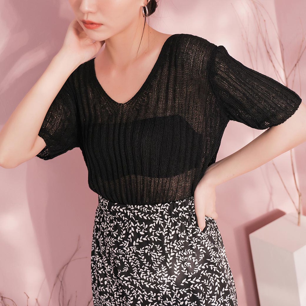 IN' SHOP 透膚V領針織上衣-共2色【KT222351】
