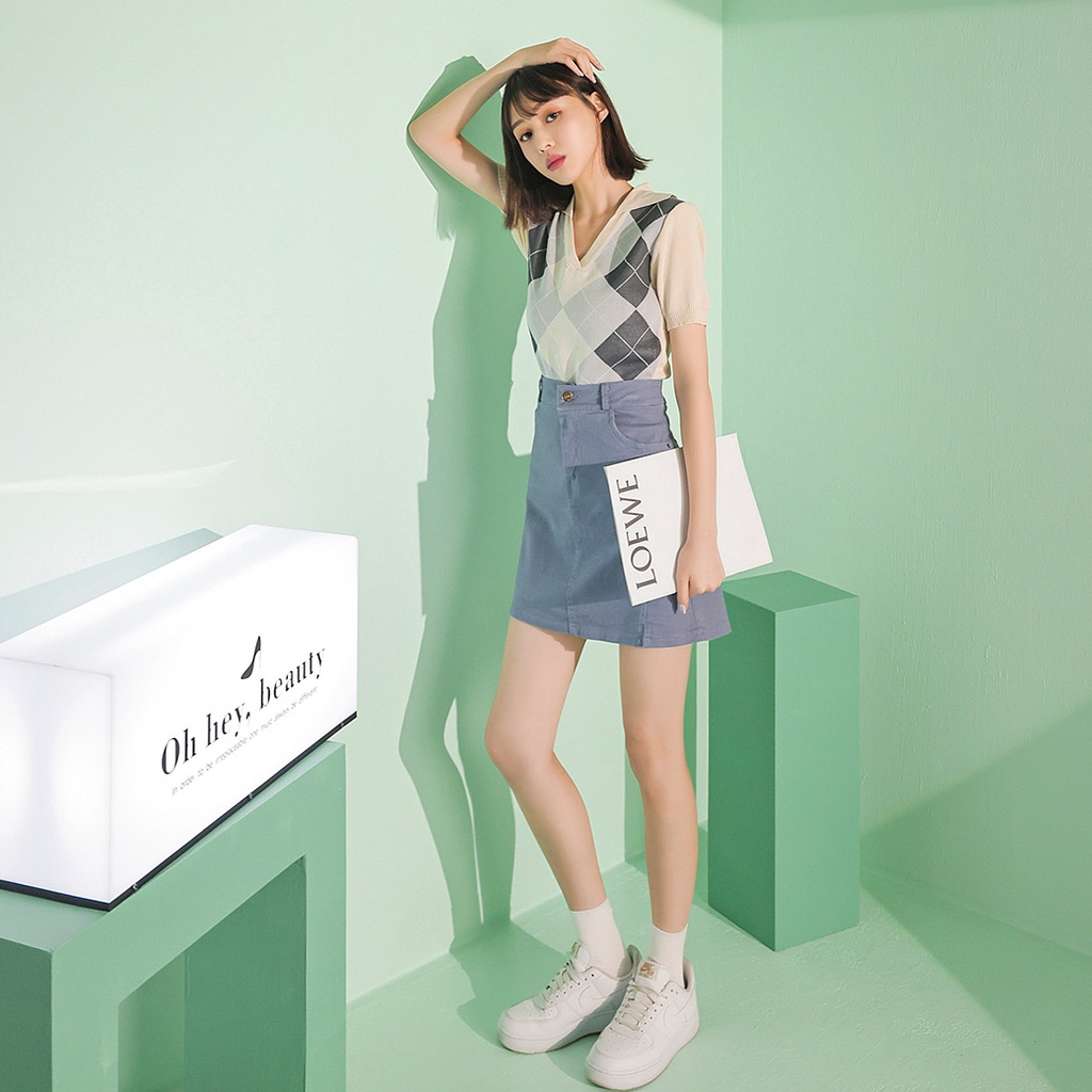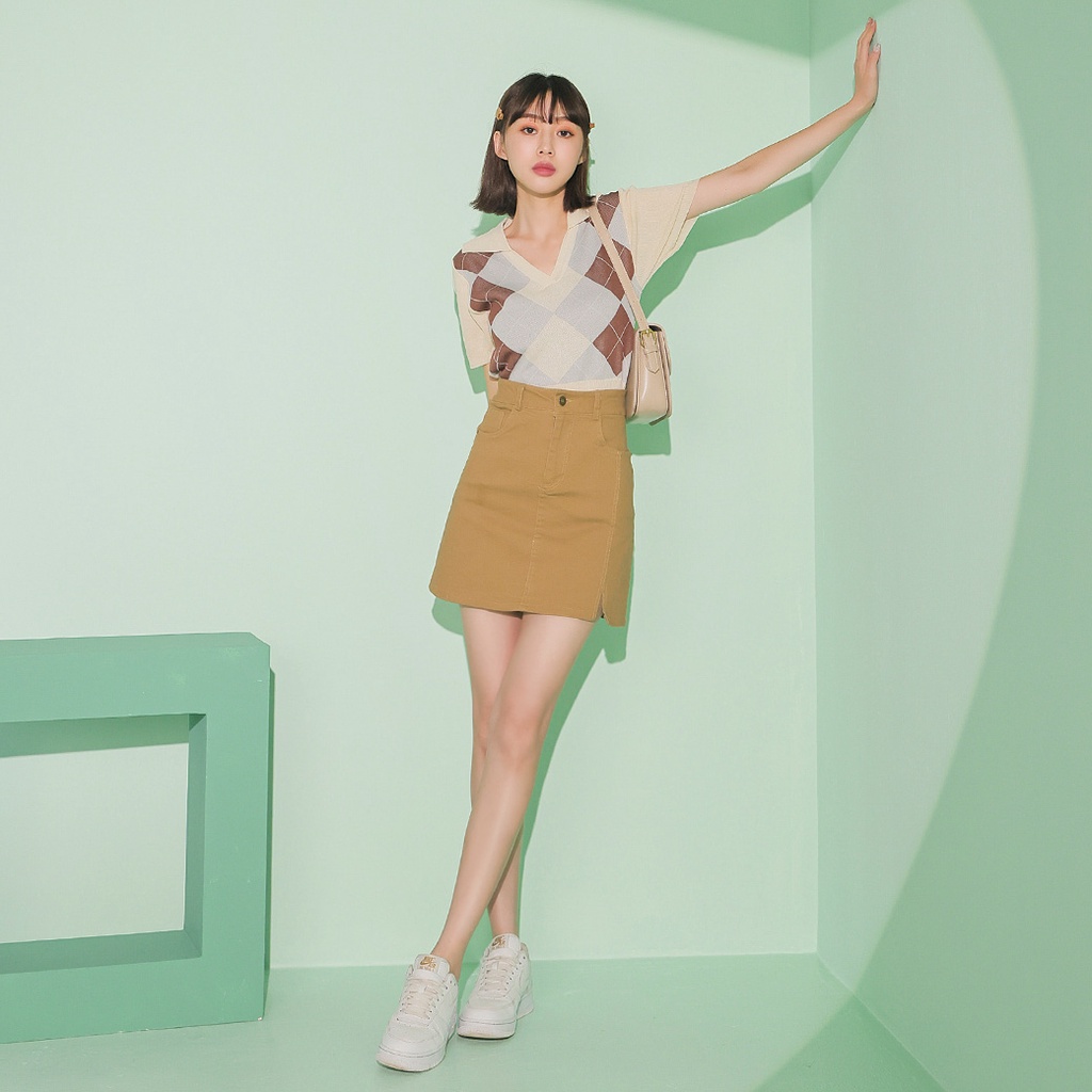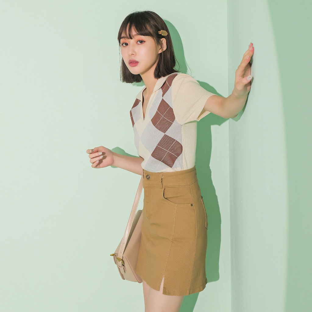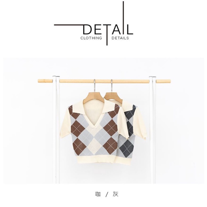 IN SHOP 復古菱格翻領上衣-共2色【KT222655】