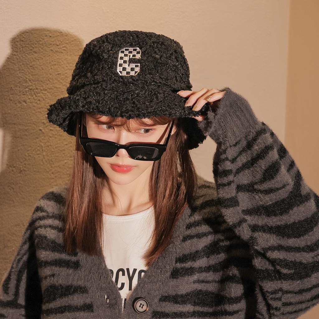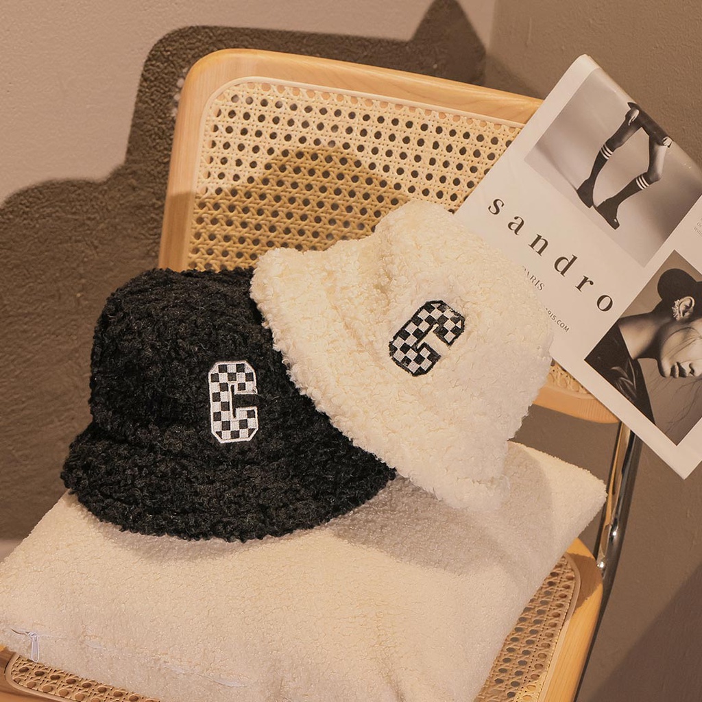 IN SHOP 格子字母QQ毛漁夫帽-共2色【KT27292】