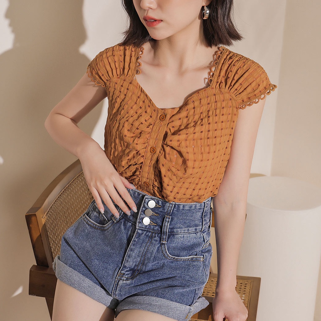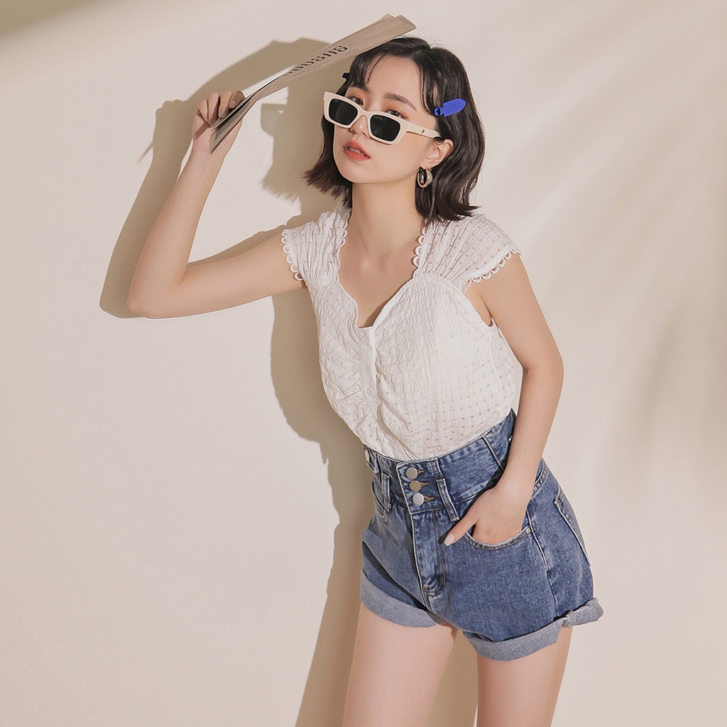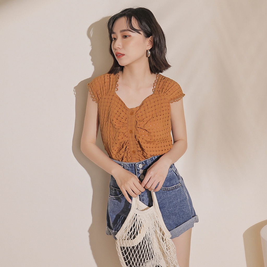 IN SHOP 小花邊抓皺無袖背心-共3色【KT222611】