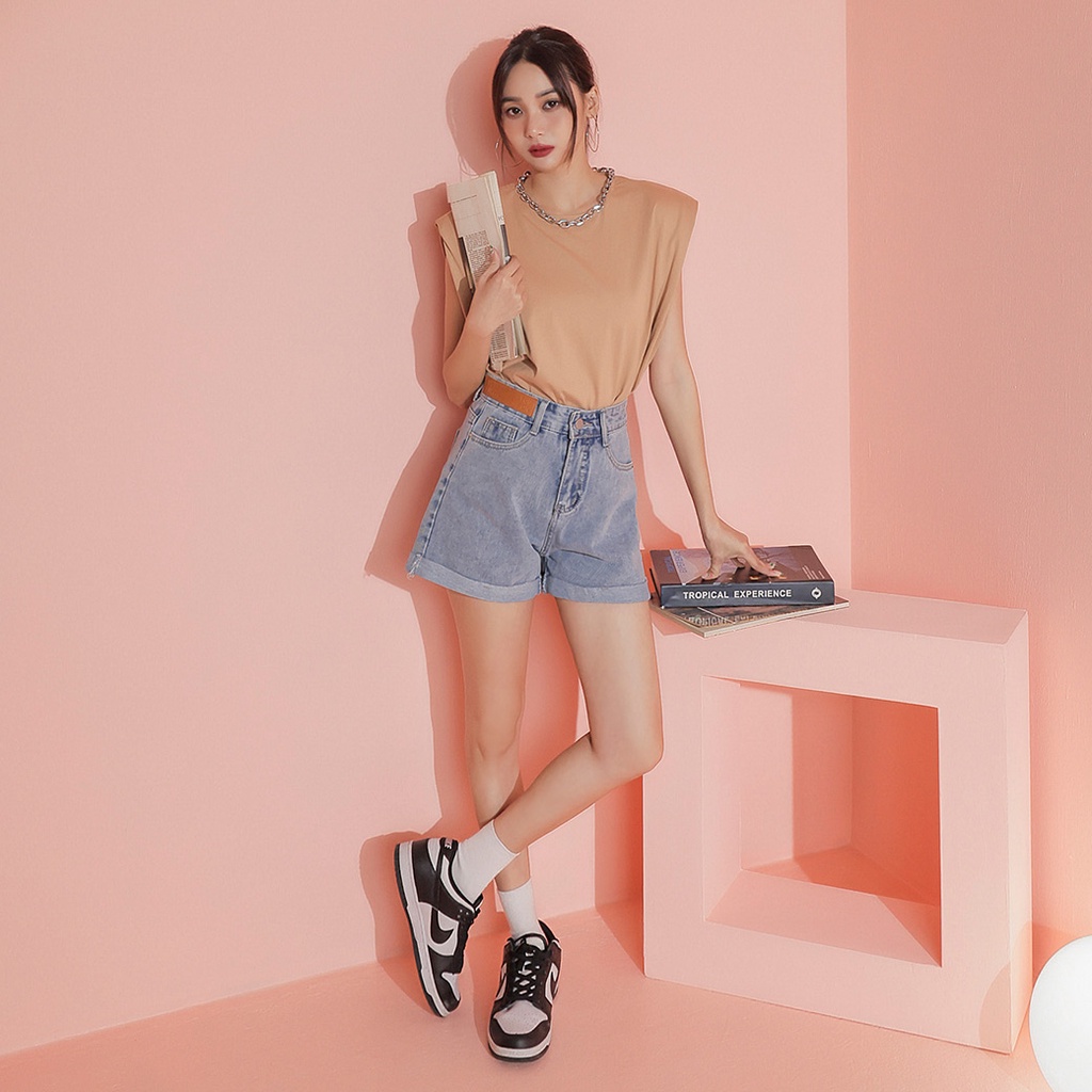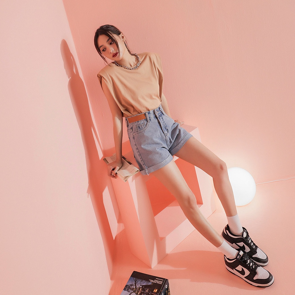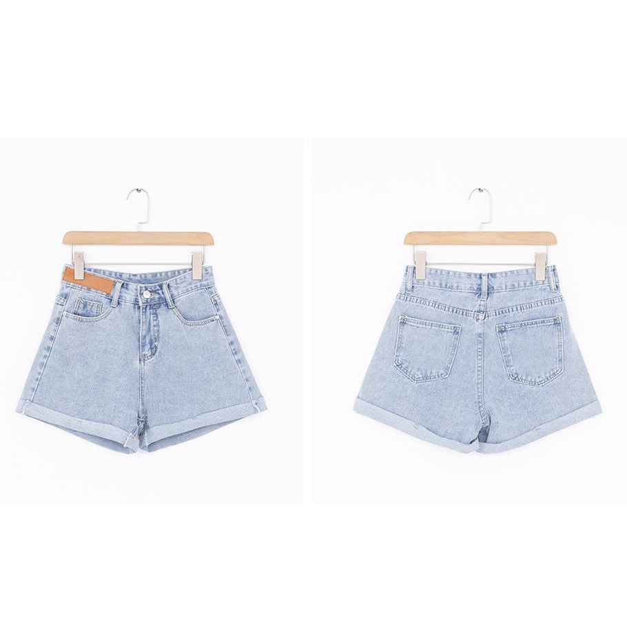 IN SHOP 皮革標反褶牛仔短褲【KT201215】