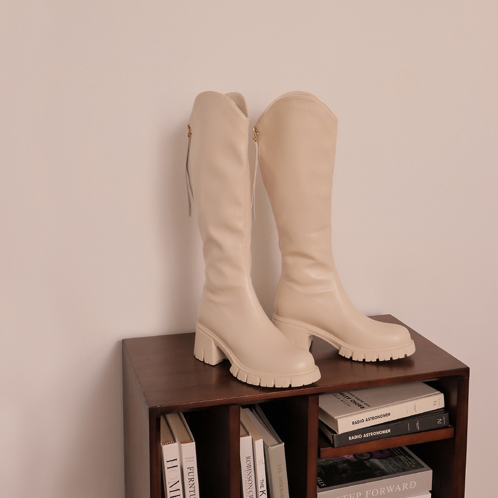 IN SHOP 流蘇拉鍊粗跟長靴-共2色【KS30165】