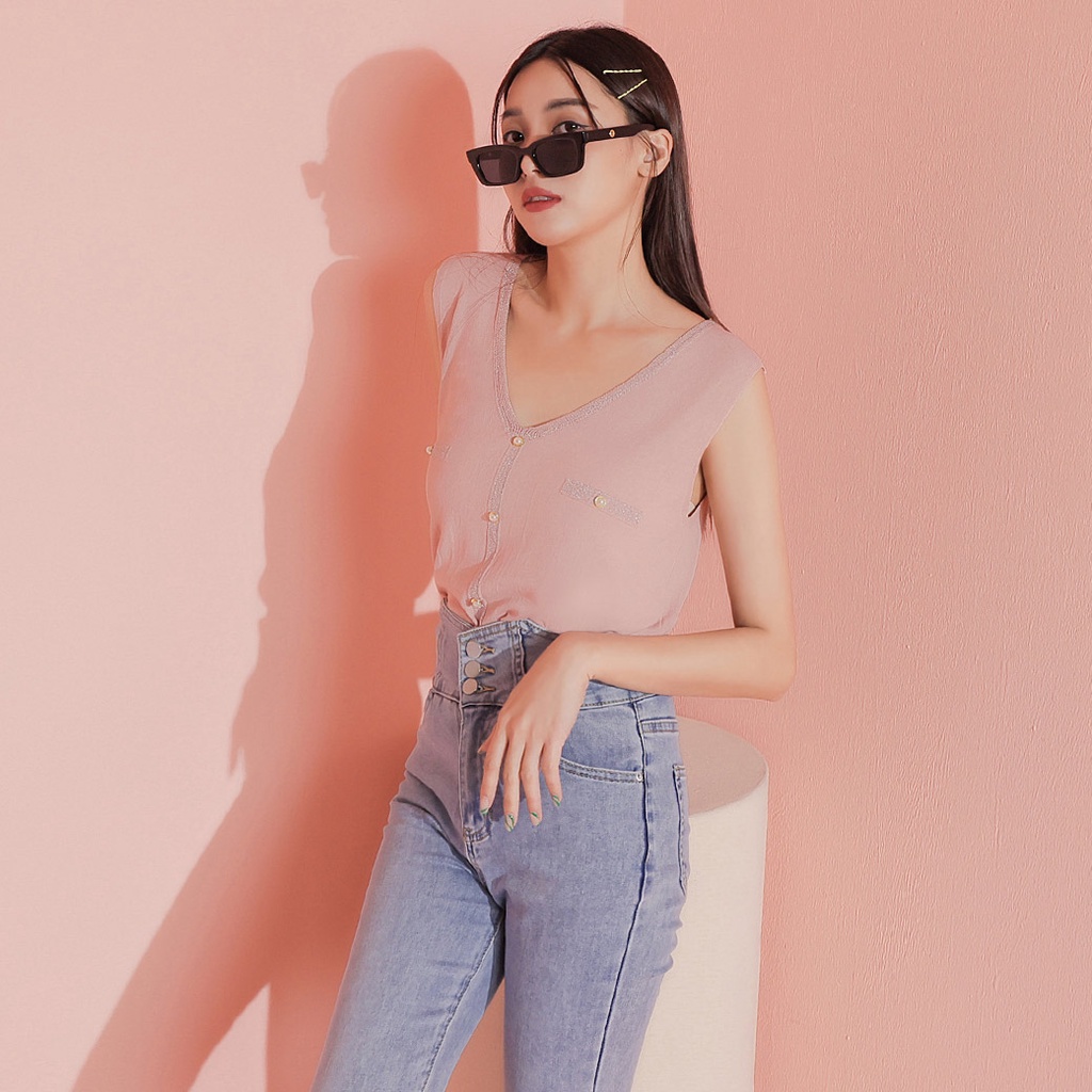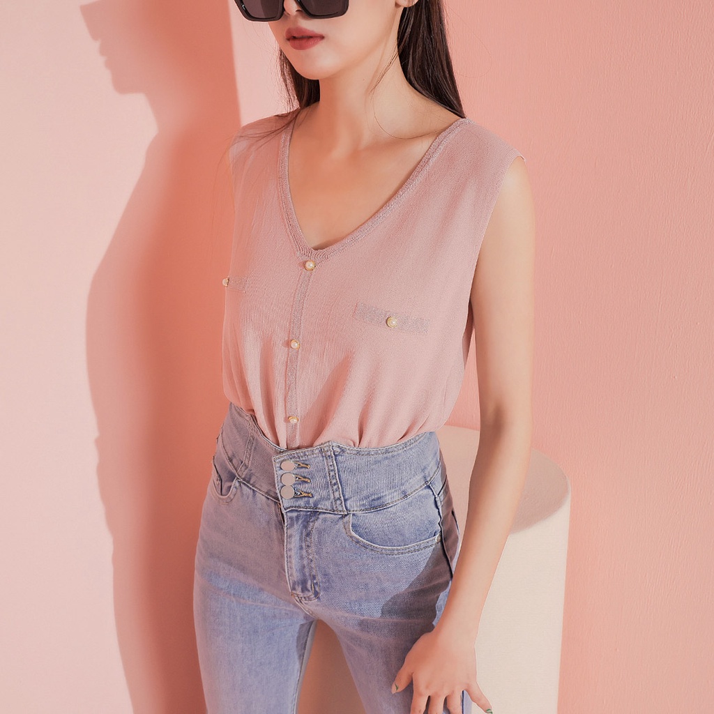 IN SHOP 氣質珍珠釦V領背心-共2色【KT222639】