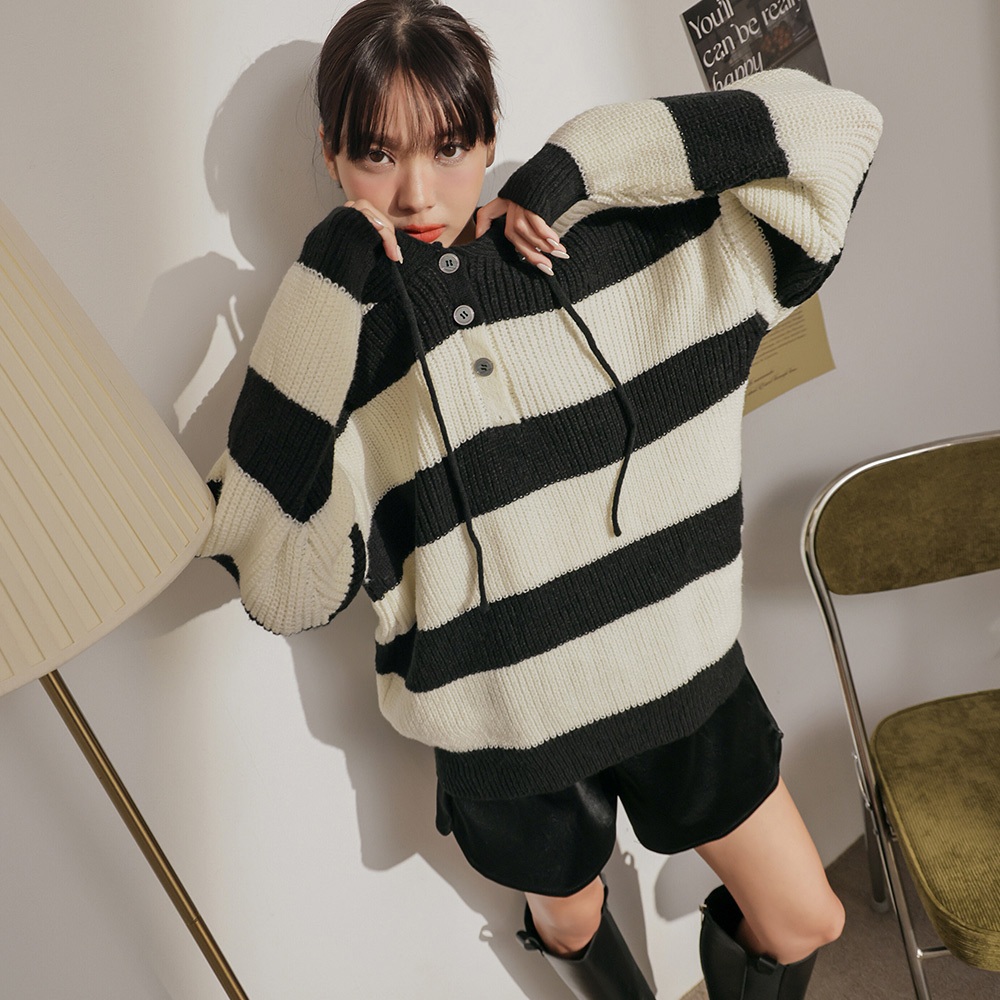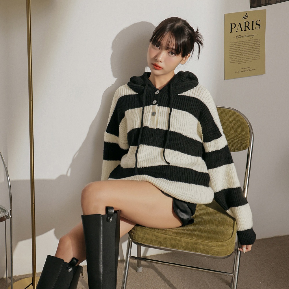 IN SHOP 橫條紋連帽針織衣-共1色【KT223376】