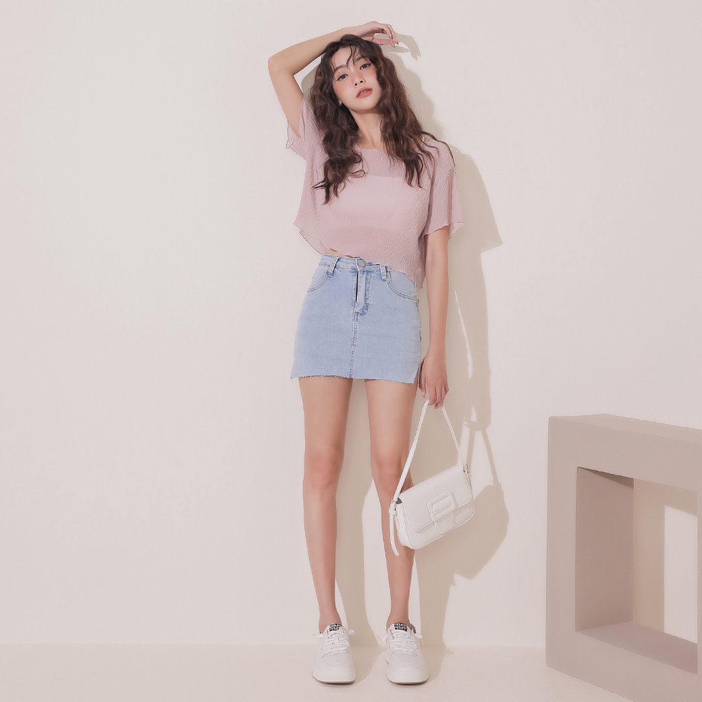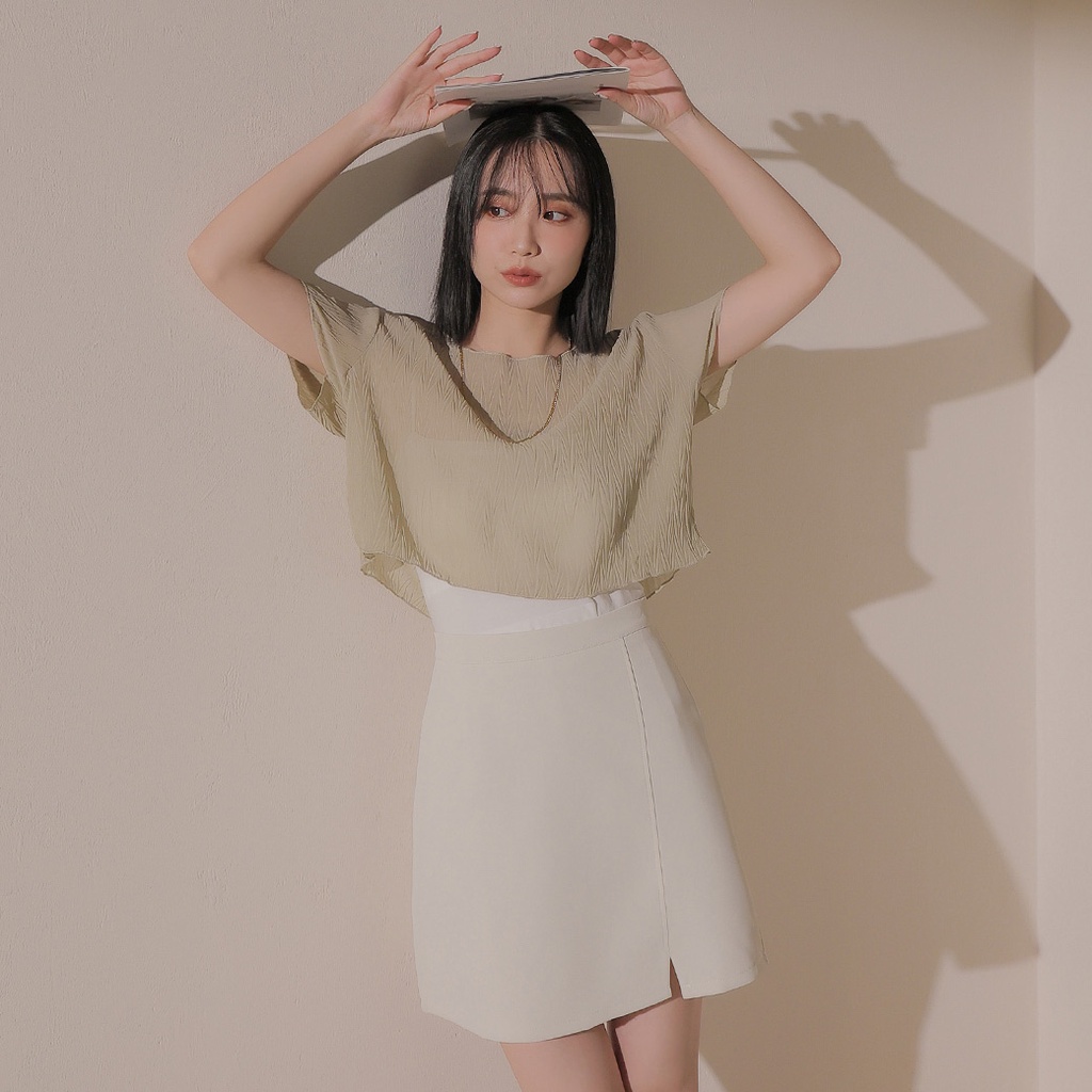 IN SHOP 透肌壓皺短版上衣-共4色【KT222722】