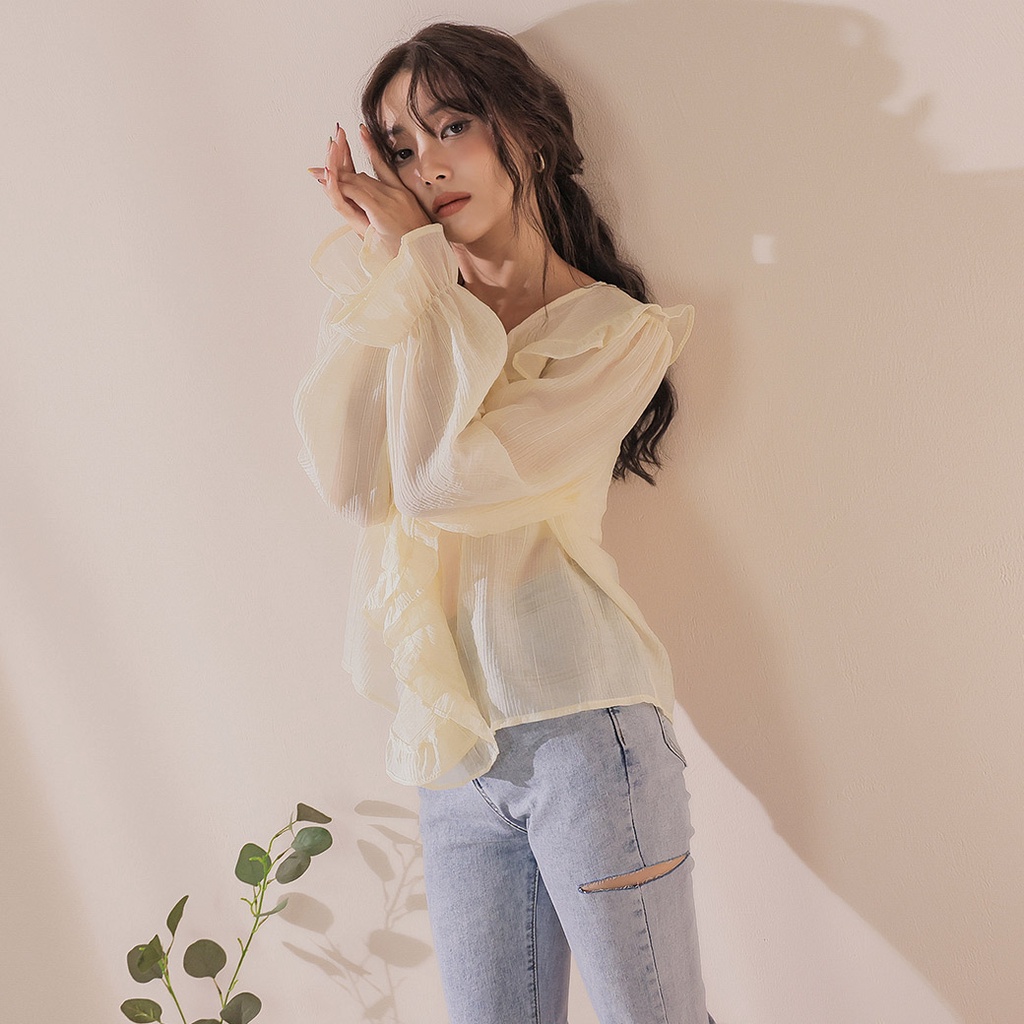 IN SHOP 透肌荷葉壓皺上衣-共2色【KT222757】