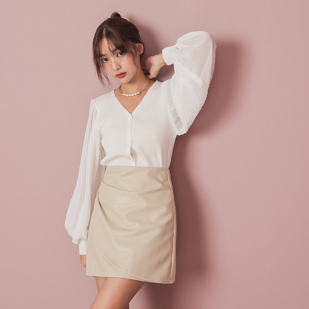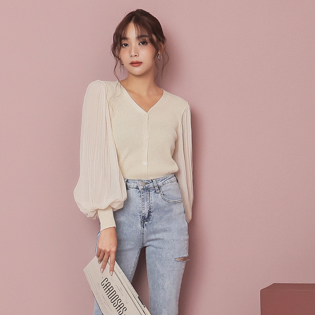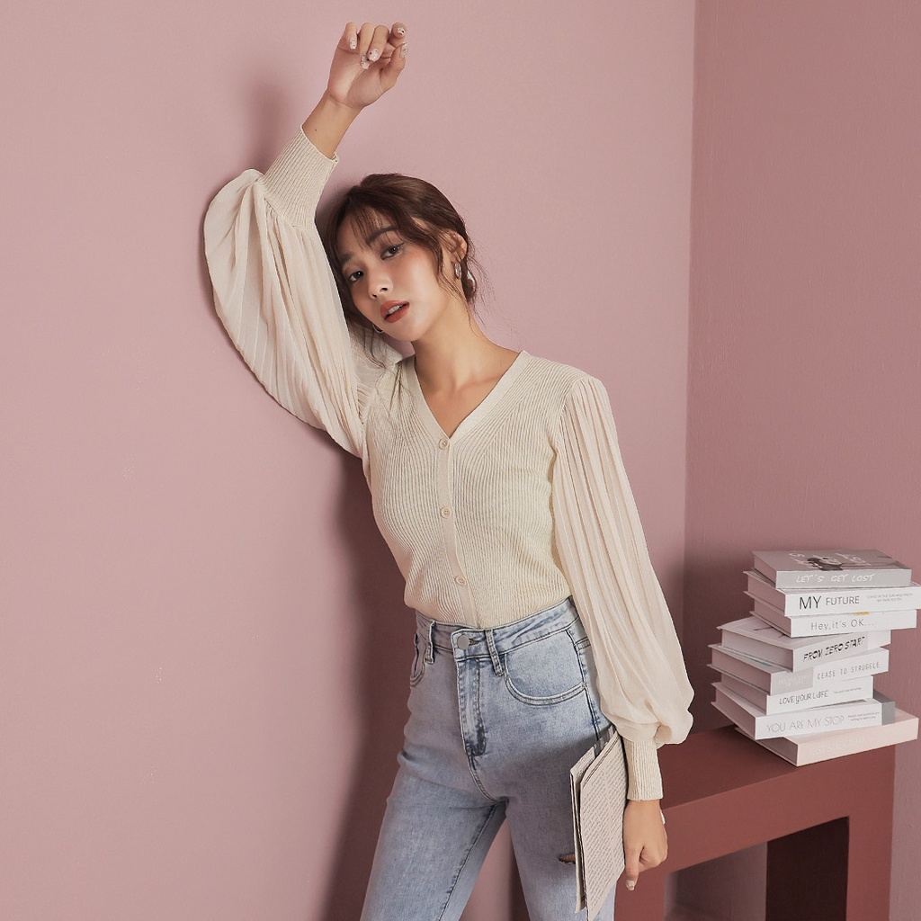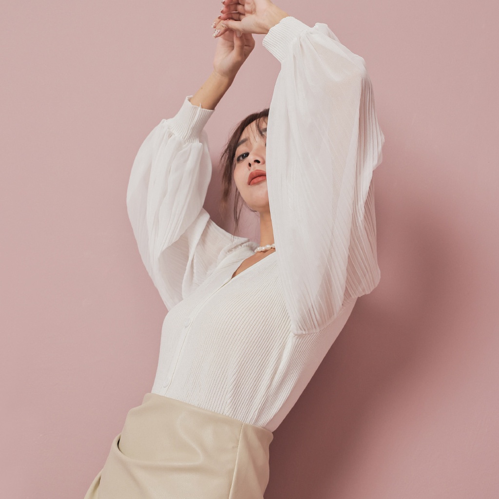IN SHOP 百褶雪紡袖針織上衣-共2色【KT222773】