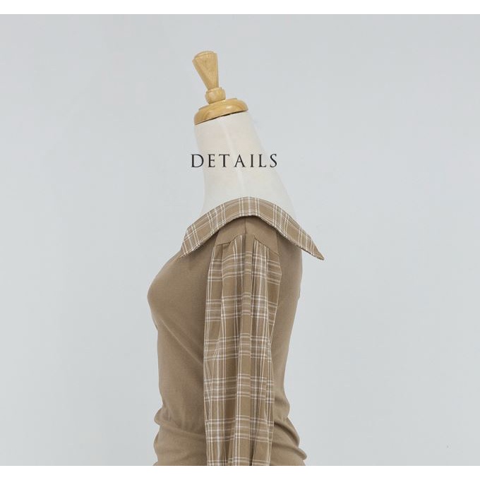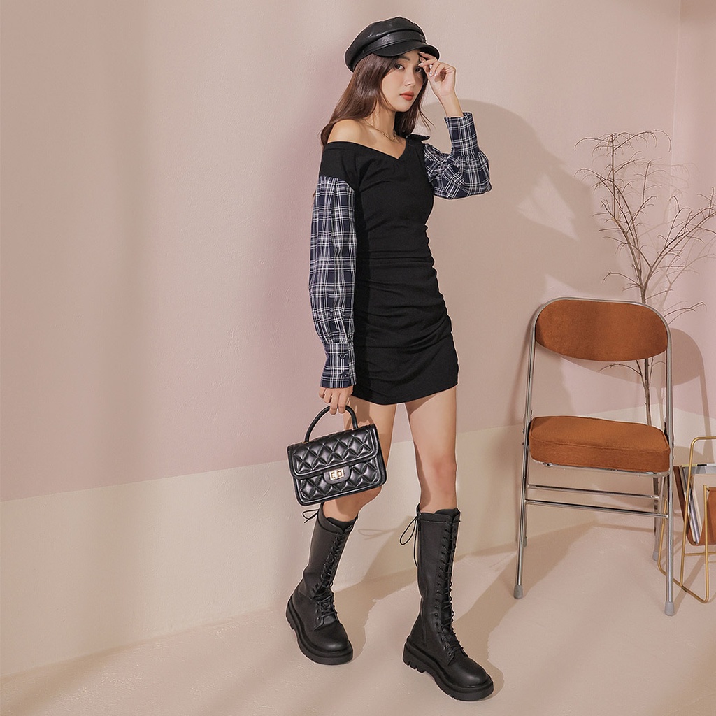 IN SHOP 格紋拼接抓皺洋裝-共2色【KT23608】
