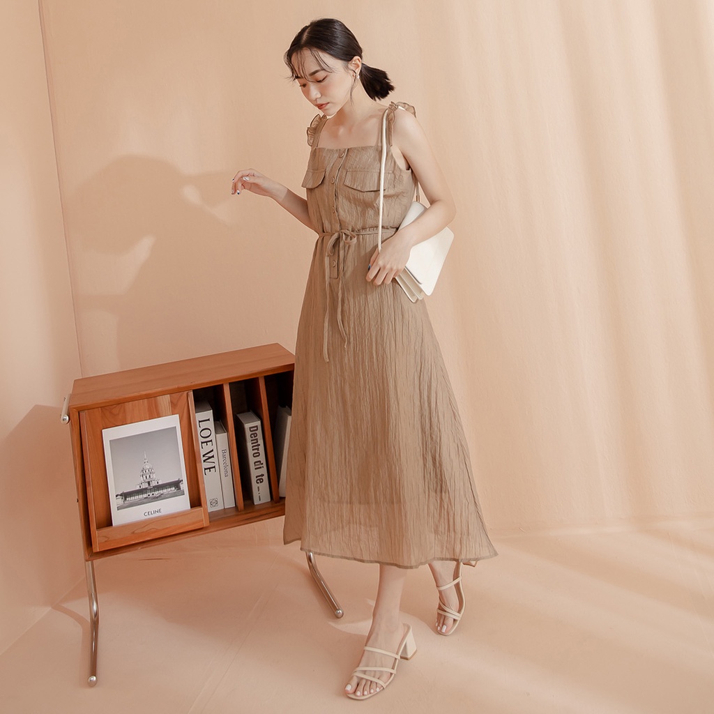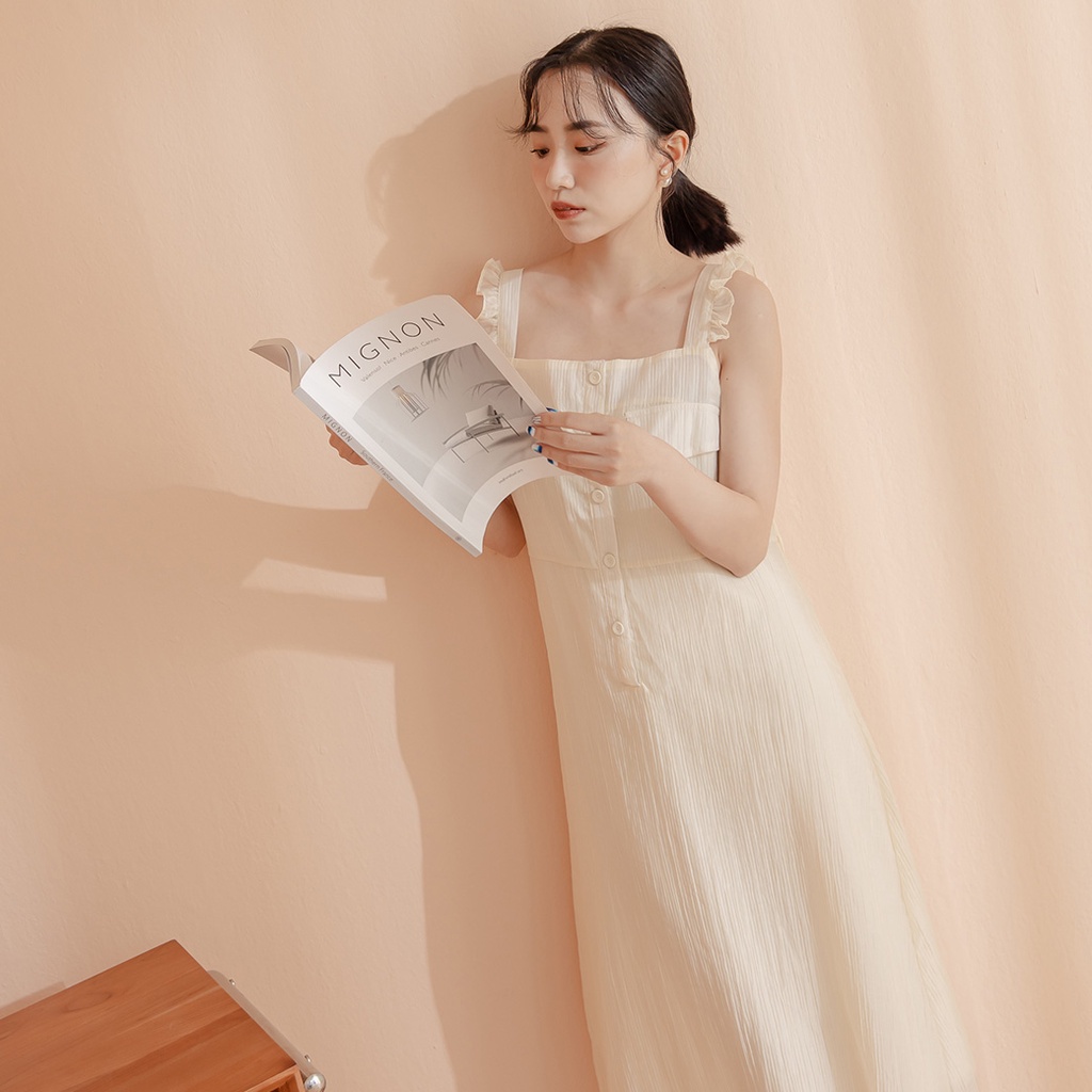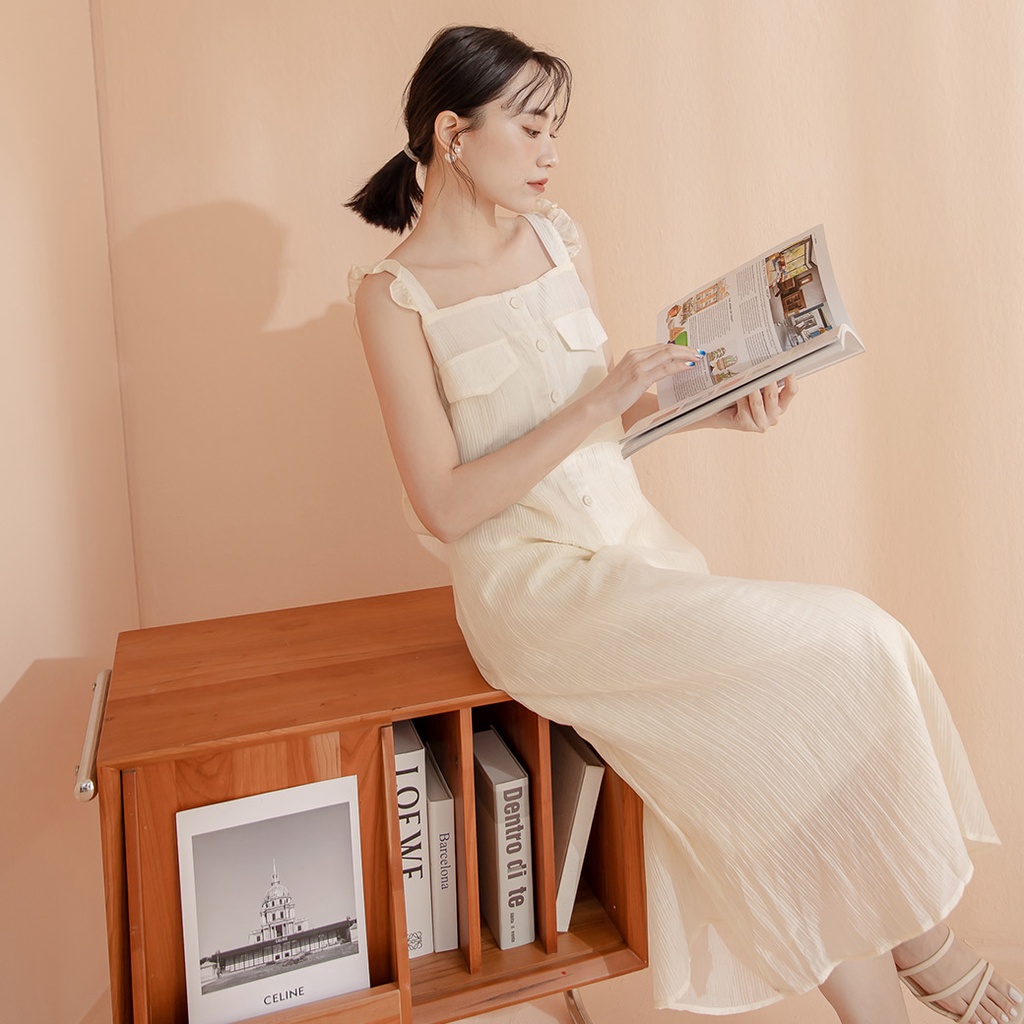 IN SHOP 荷葉肩帶連身長裙-共2色【KT23607】