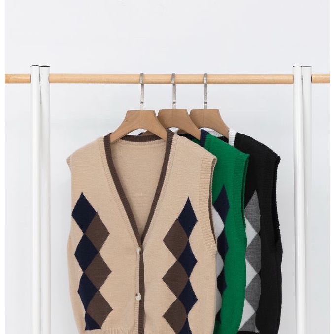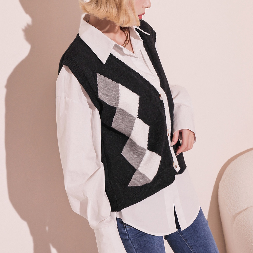 IN SHOP 菱格排釦針織背心-共3色【KT222826】