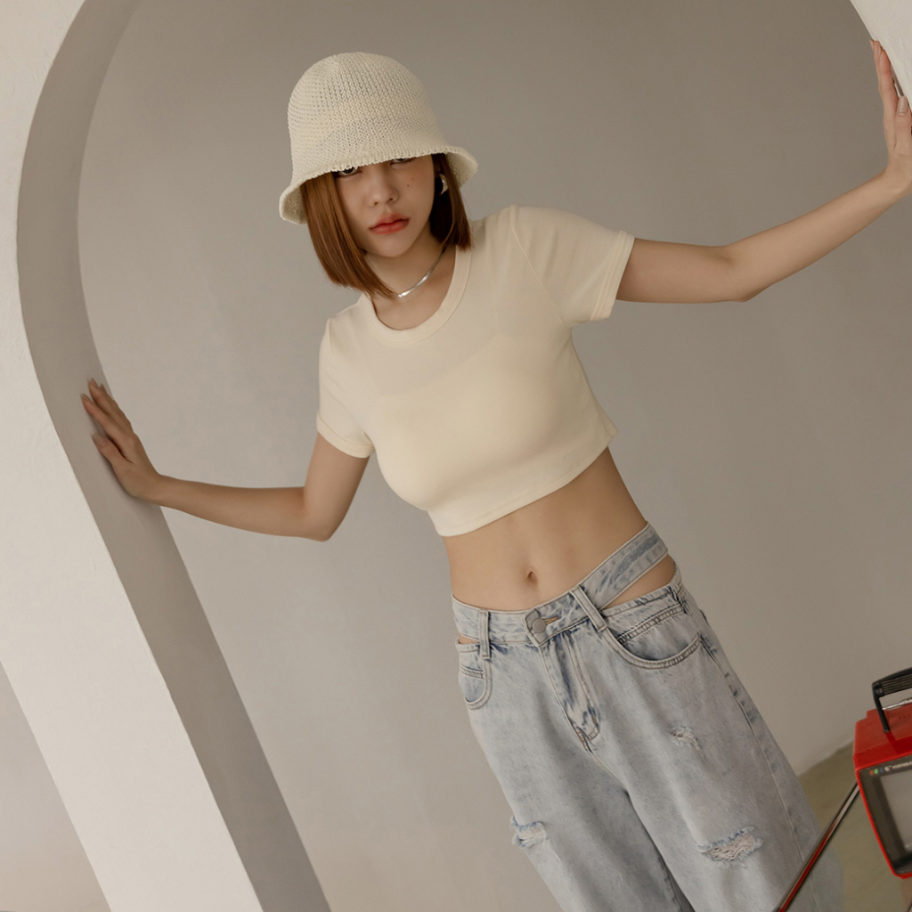 IN SHOP 圓領彈性短版T恤-共5色【KY19169】