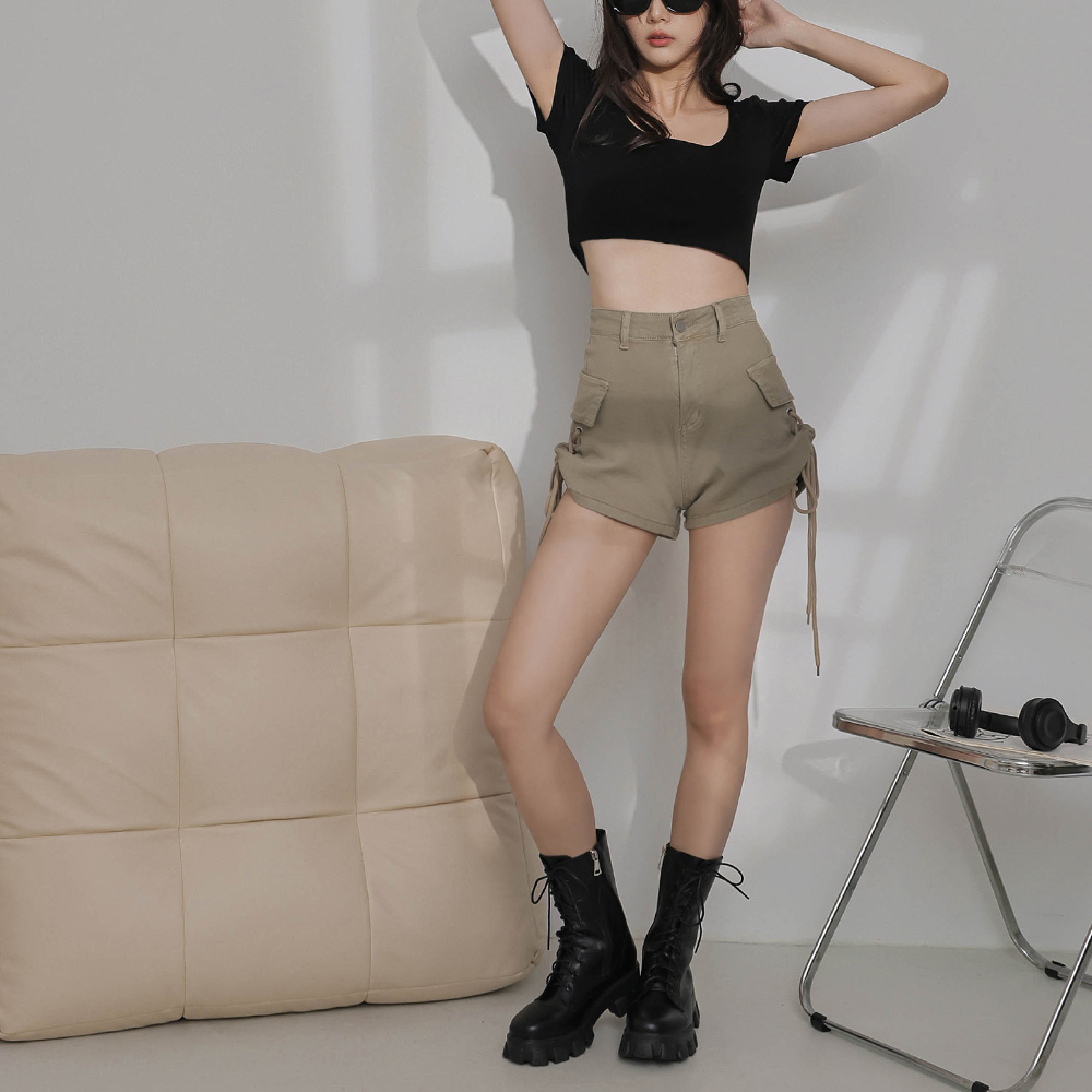 IN SHOP 側抽繩單釦翻蓋短褲-共3色【KT201382】