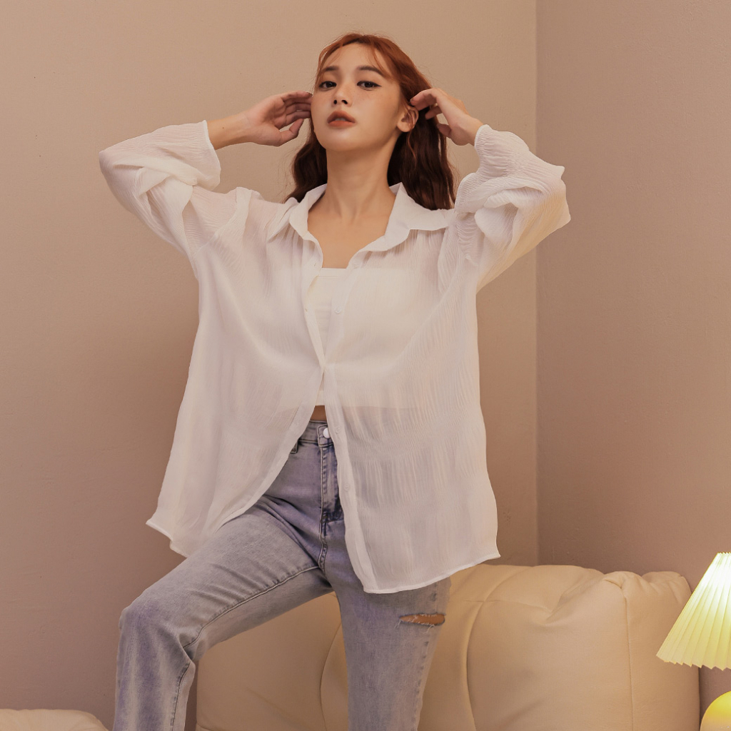 IN SHOP 波紋壓皺透膚襯衫-共4色【KT222900】