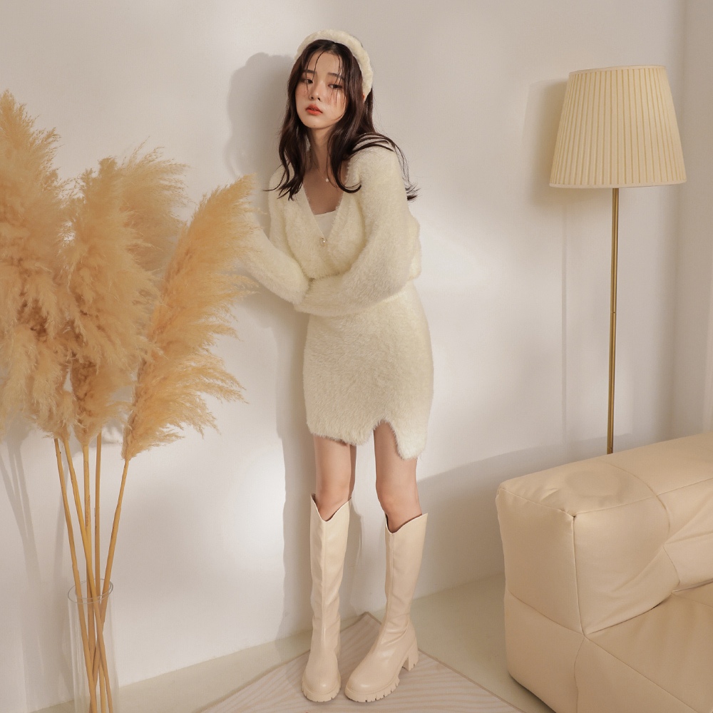 IN SHOP 軟糯微開叉短裙套裝-共3色【KT24442】