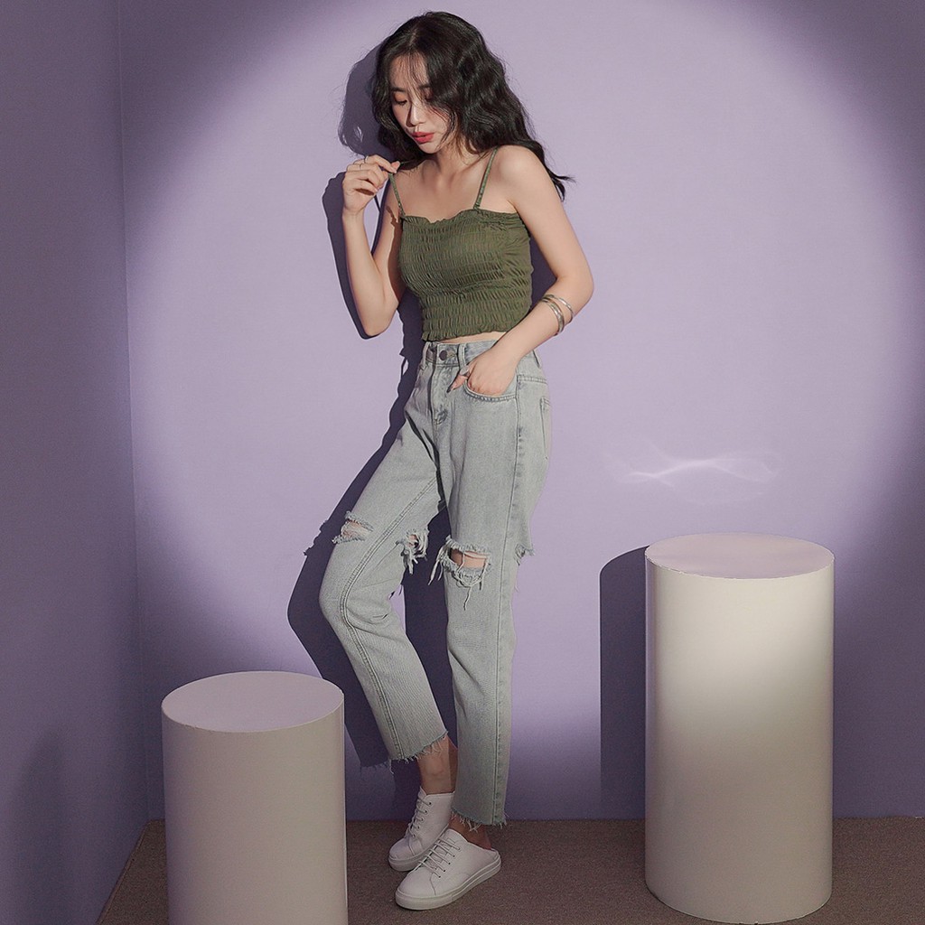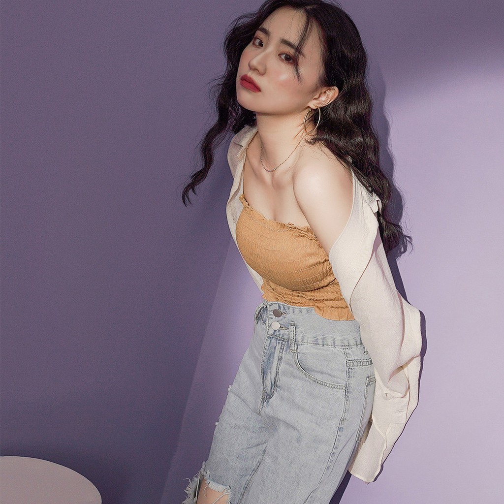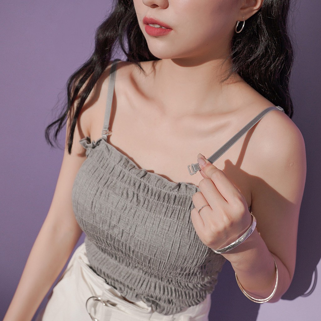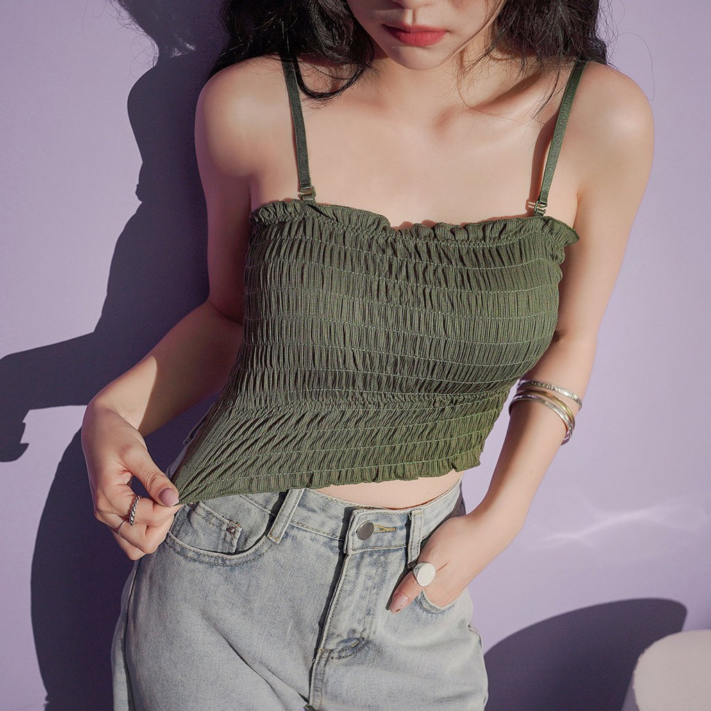 IN SHOP 平口滾邊皺摺背心(附胸墊)-共6色【KT221794】