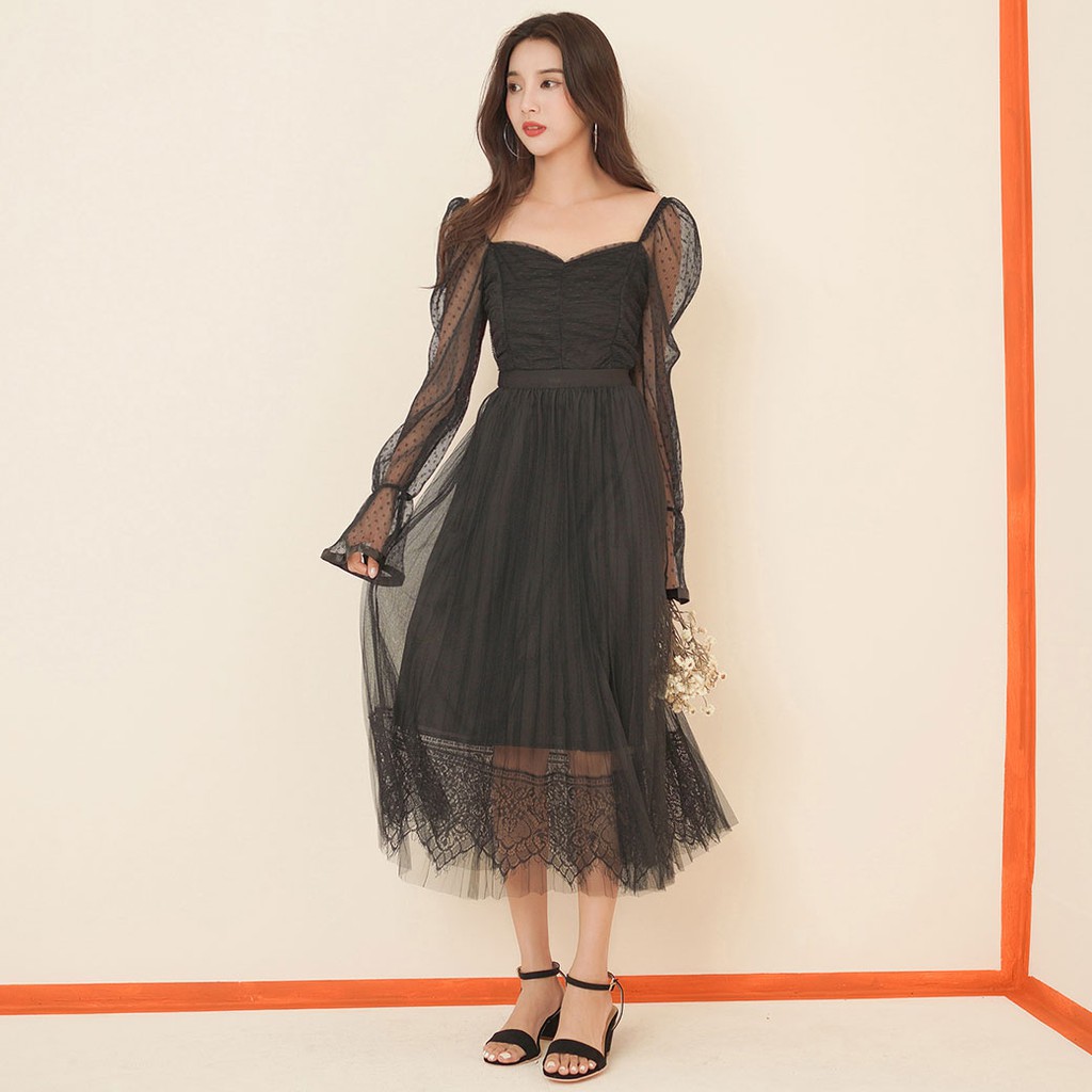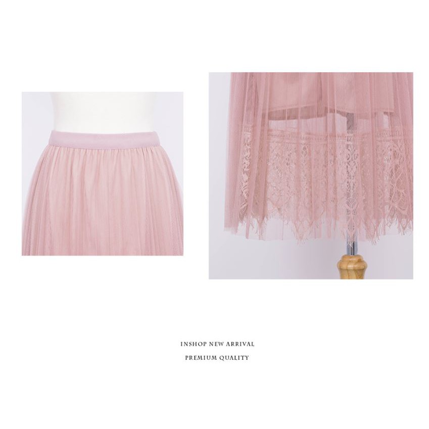 IN SHOP 氣質蕾絲網紗百褶長裙-共3色【KT21518】