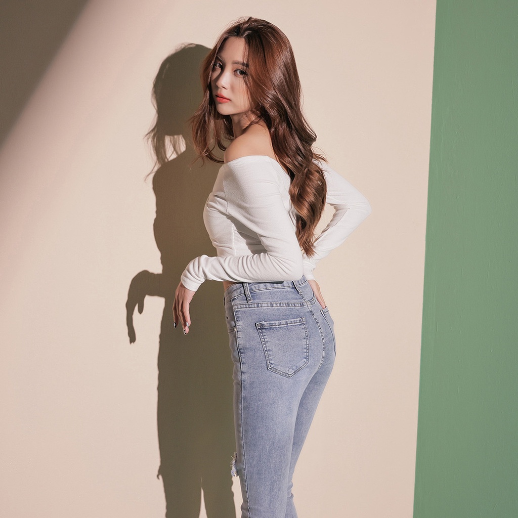 IN SHOP 雙膝破洞窄管牛仔褲-共2色【KT201091】