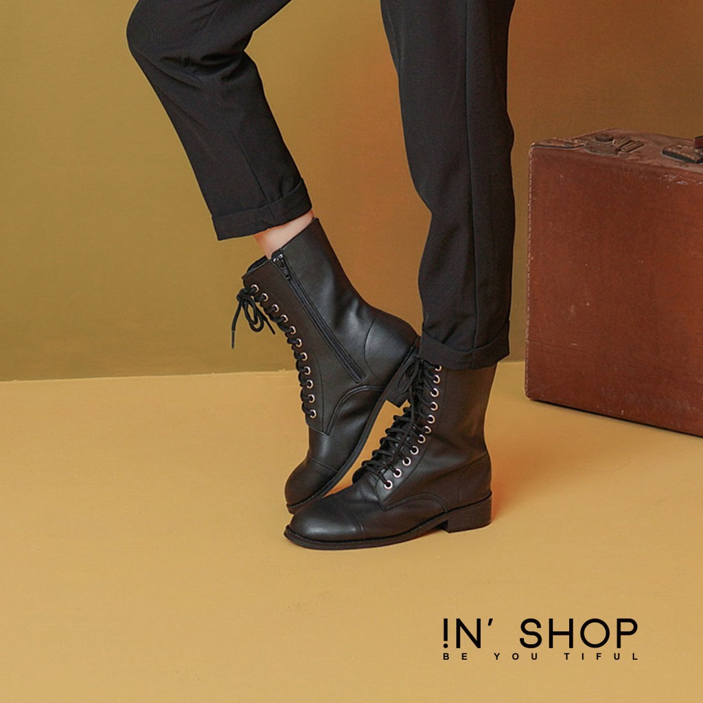 IN SHOP 11孔銀環綁帶中筒靴【KS30101】
