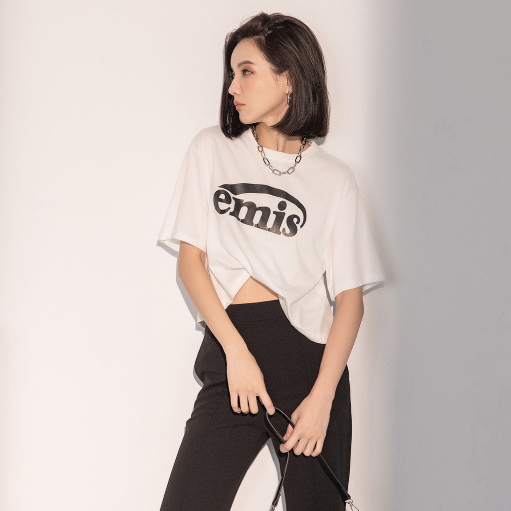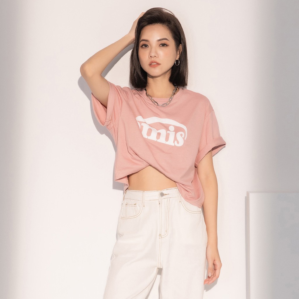IN SHOP 暗釦露腰印字T恤-共4色【KT222203】