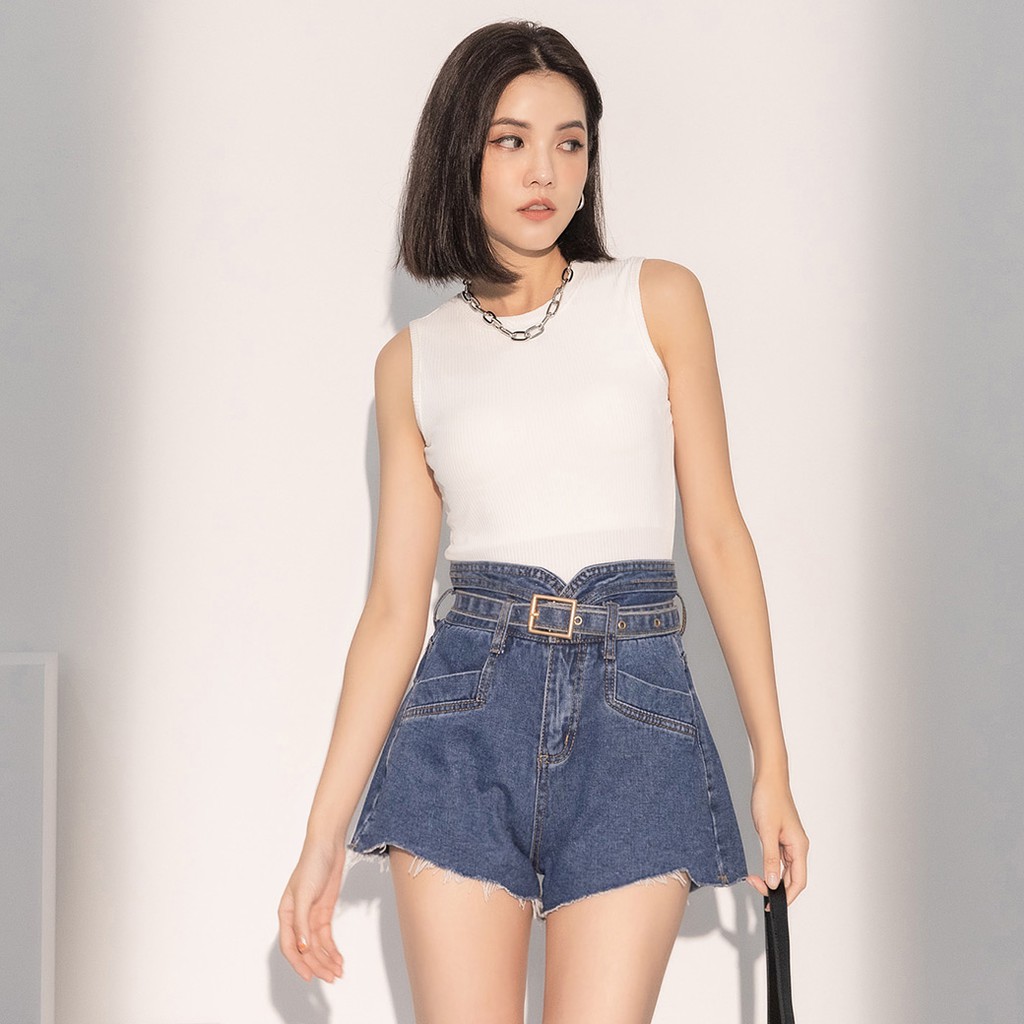 IN SHOP 歐美高腰牛仔短褲(版型偏小)-共4色【KT20927】