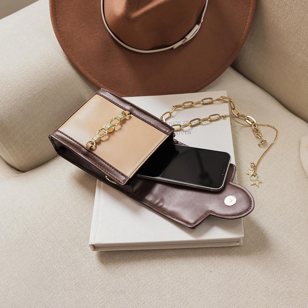 IN SHOP 復古配色鍊飾小方包-共2色【KT27253】