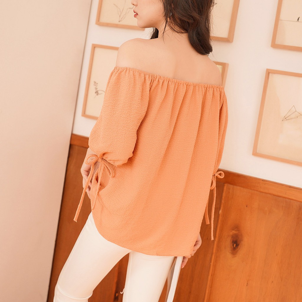 IN SHOP 一字鬆緊綁帶皺布上衣-共3色【KT221760】