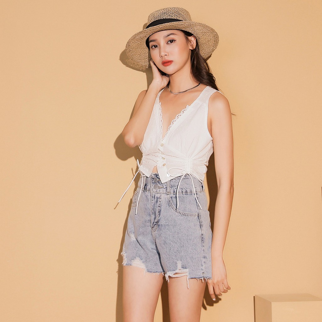 IN SHOP 深V排釦抽繩點點背心【KT222209】