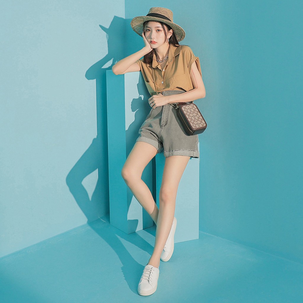 IN SHOP 不規則牛仔短褲(附腰帶)-共3色【KT201061】