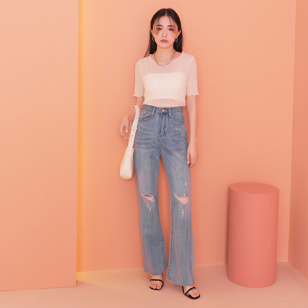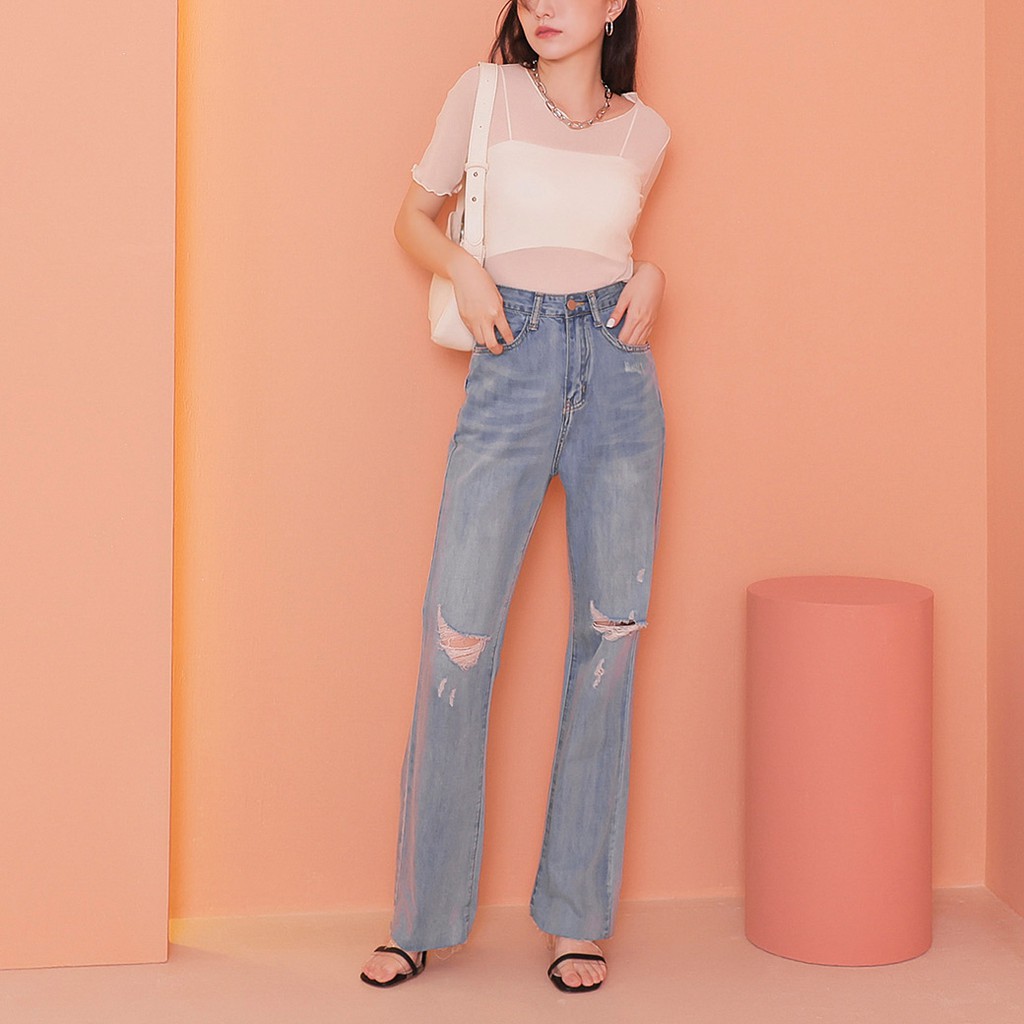 IN SHOP 破洞喇叭牛仔褲【KT201053】