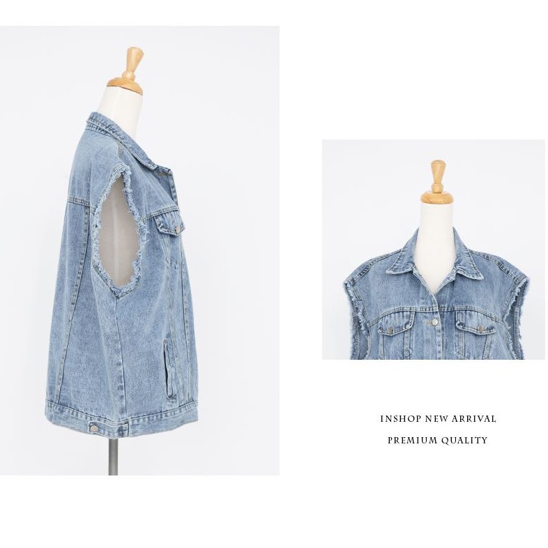 IN SHOP 抽鬚袖牛仔背心【KT28527】