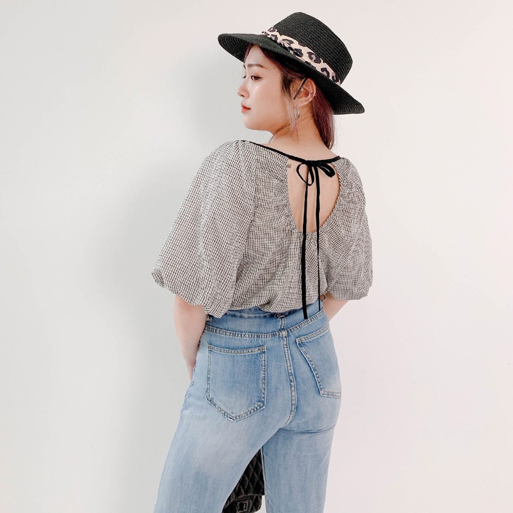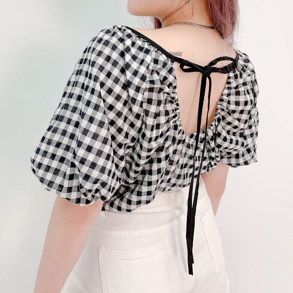 IN SHOP 後綁帶格紋上衣-共3色【KT222252】