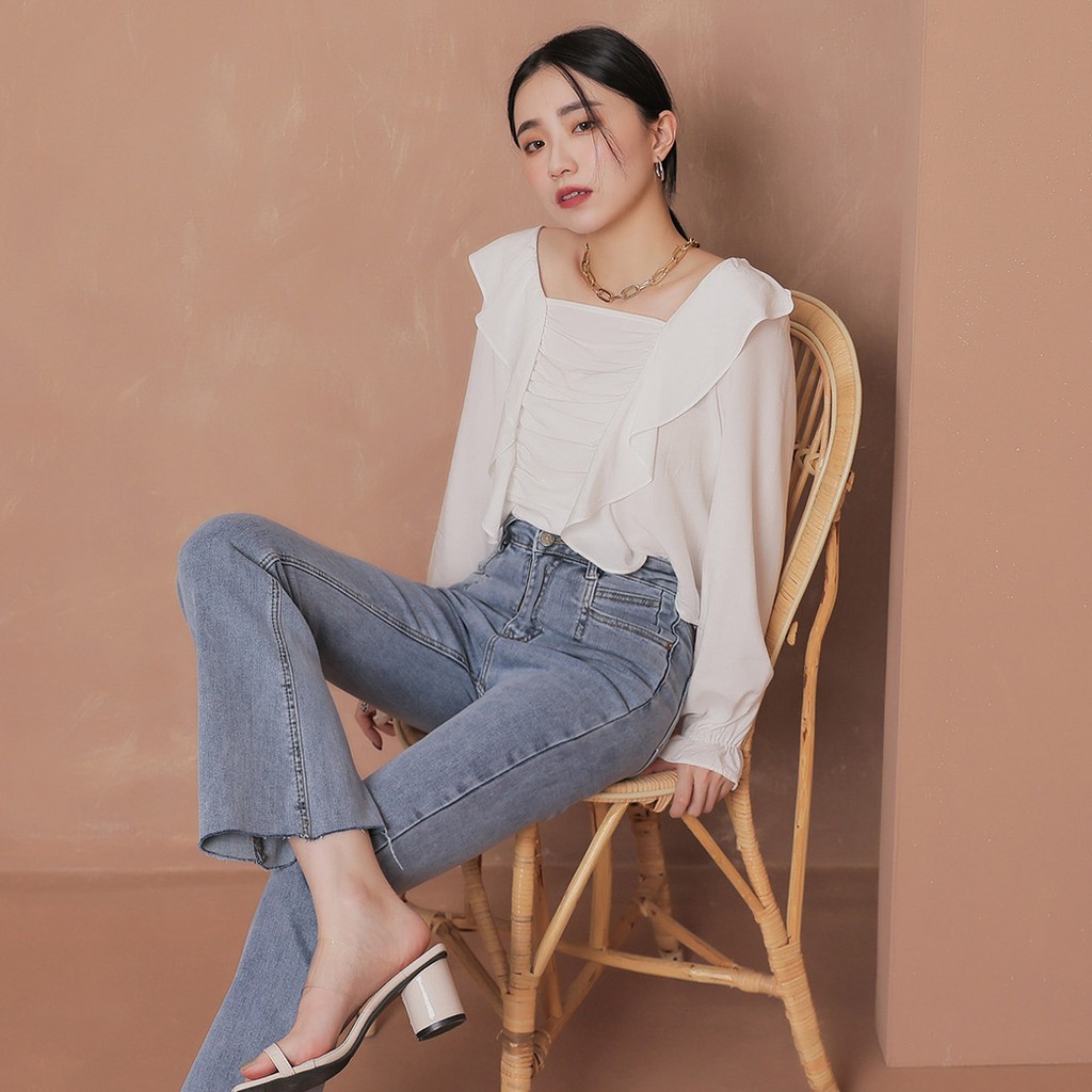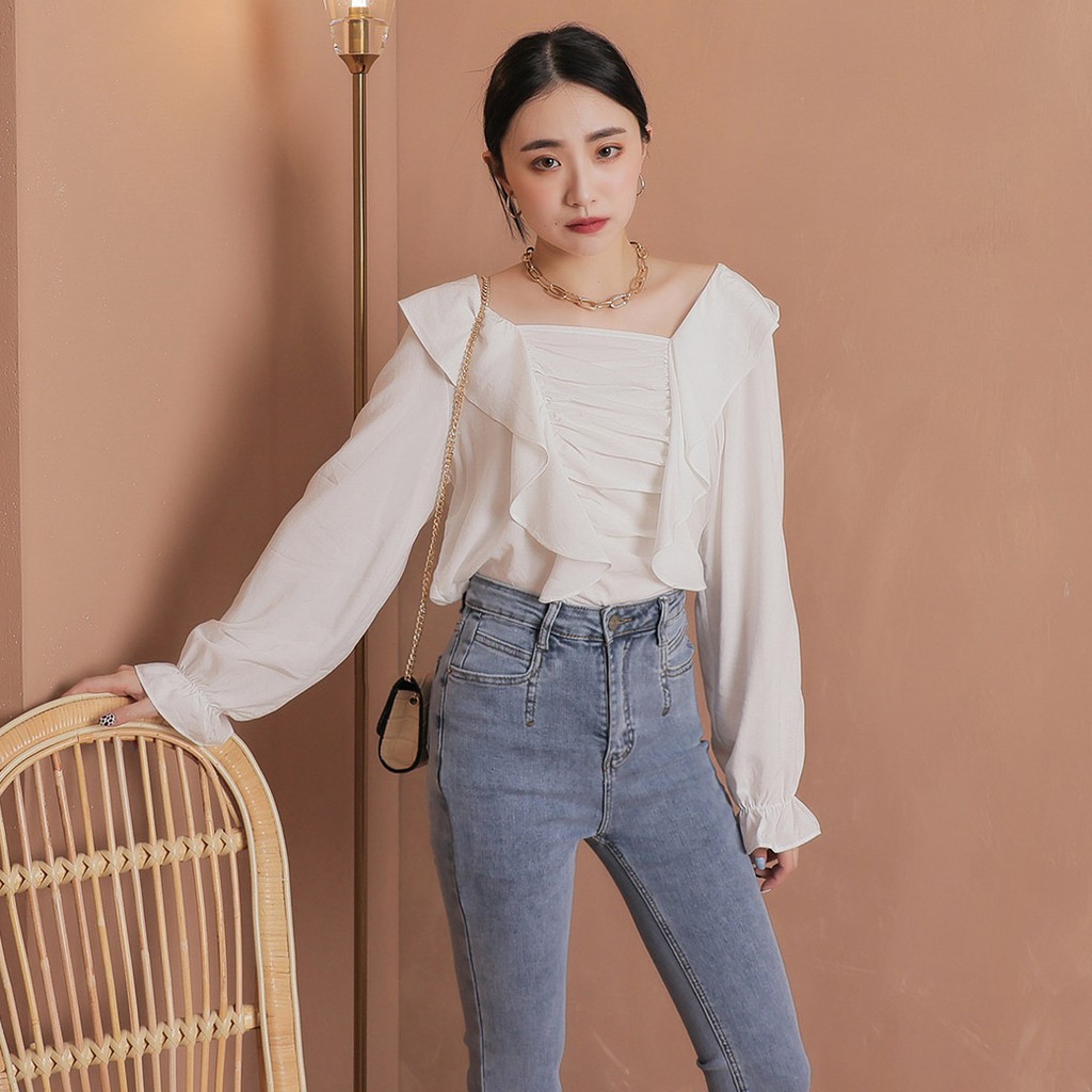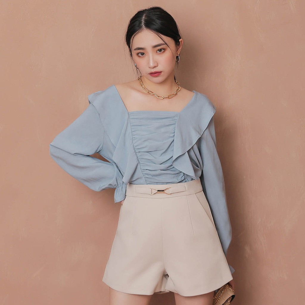 IN' SHOP 方領抓皺荷葉上衣-共3色【KT222161】