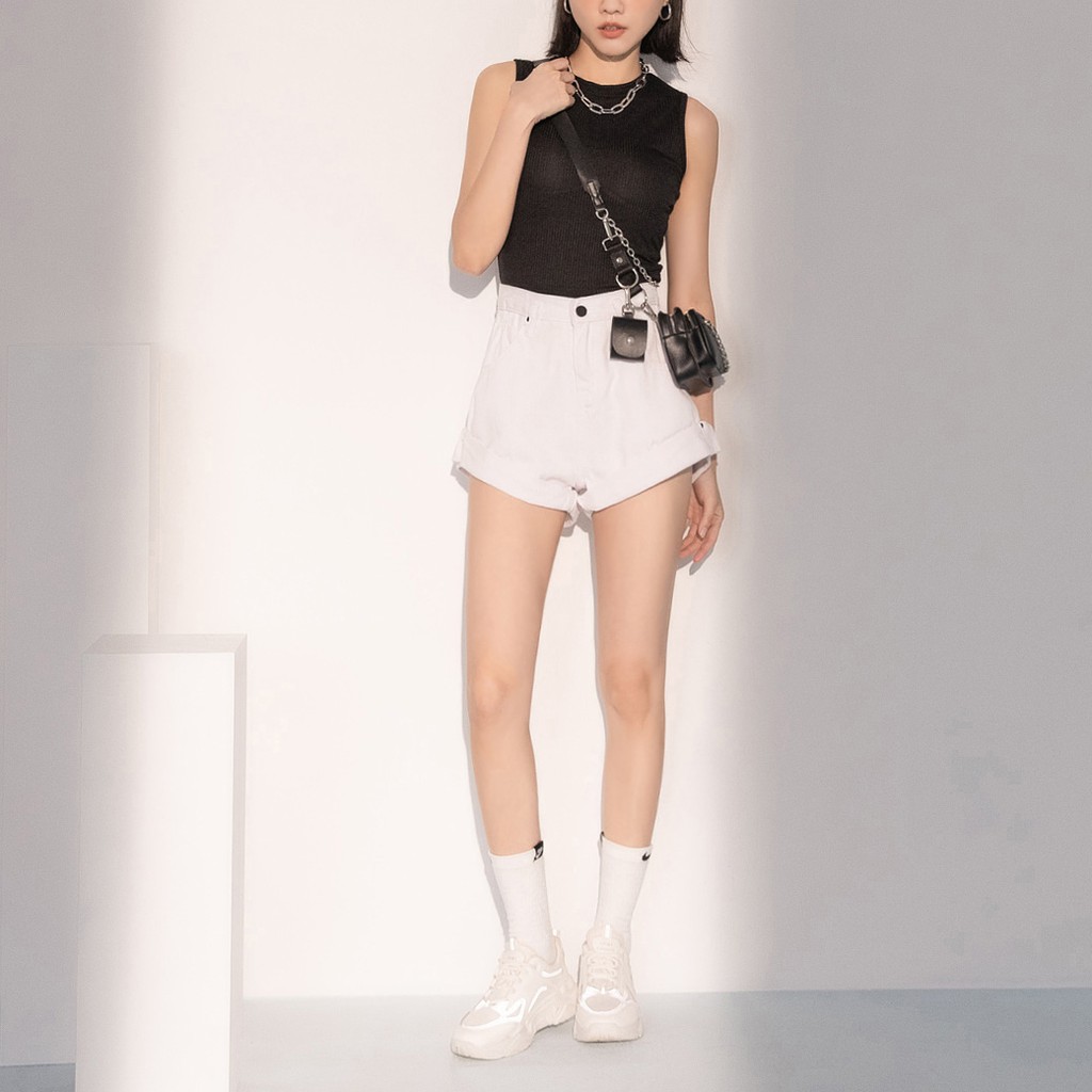 IN SHOP 高腰反褶牛仔短褲-共3色【KT201066】