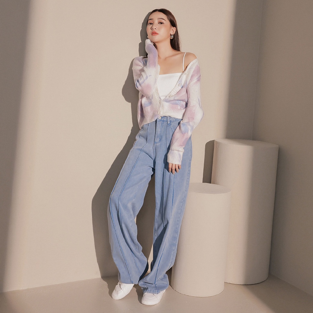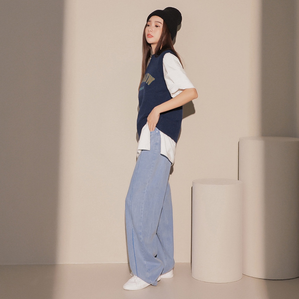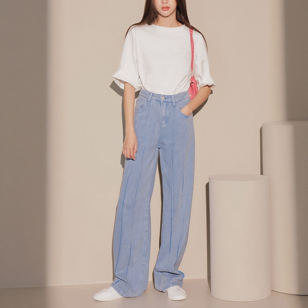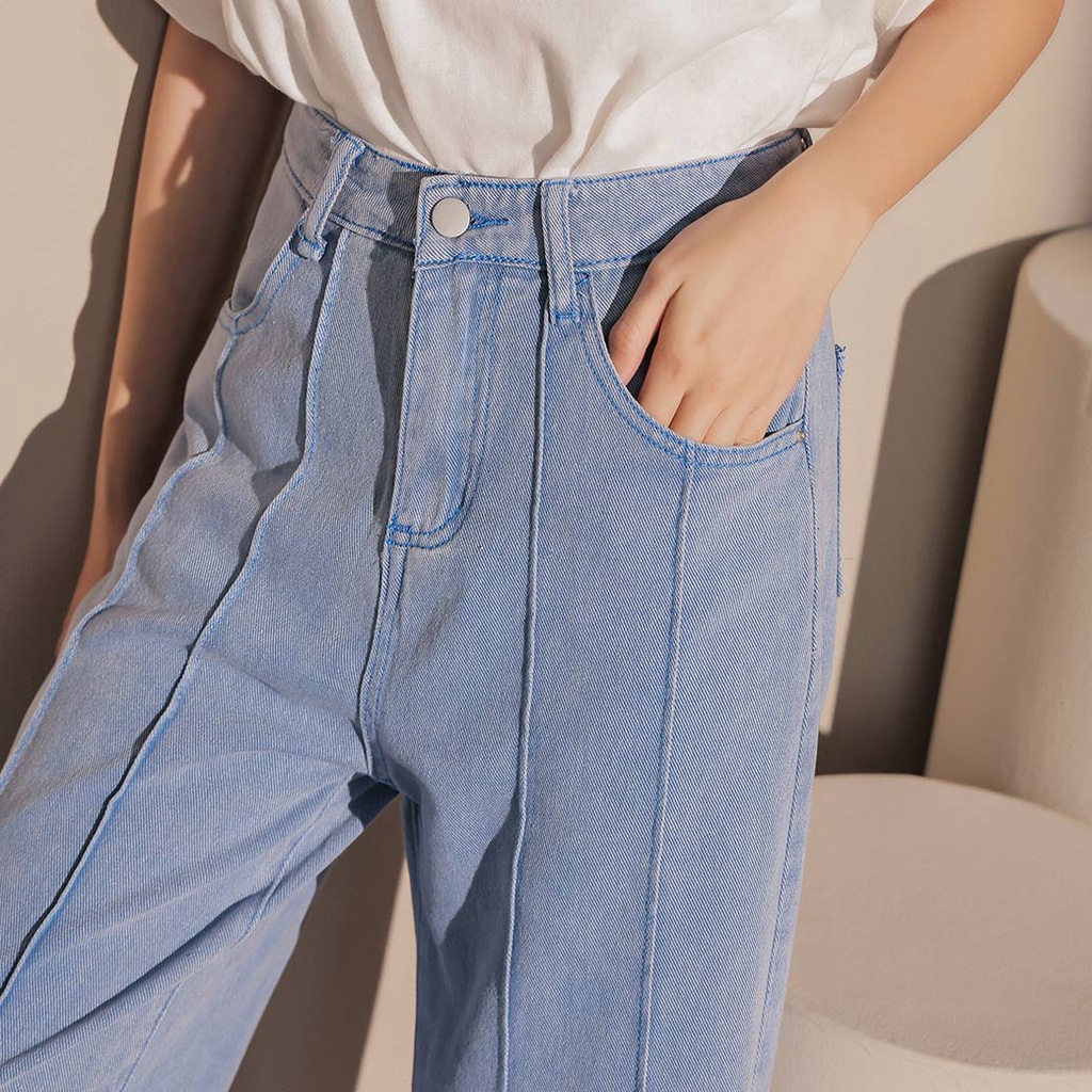 IN SHOP 前壓條牛仔直筒寬褲【KT201104】