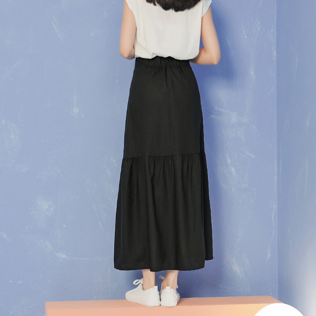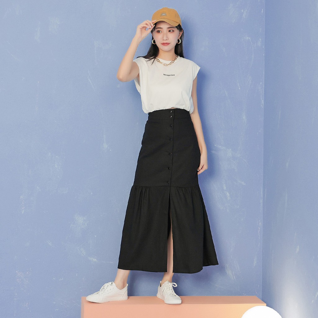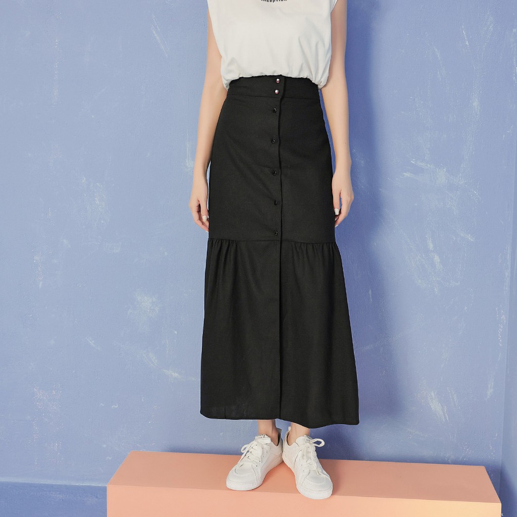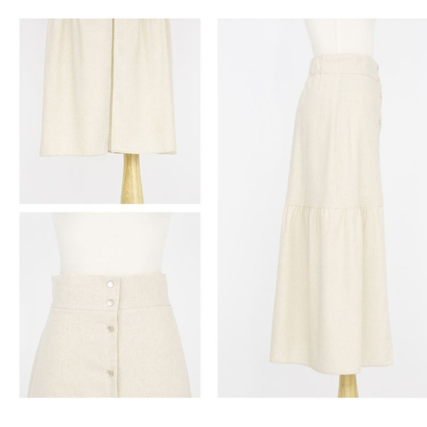IN SHOP 排釦棉麻魚尾長裙-共2色【KT21601】