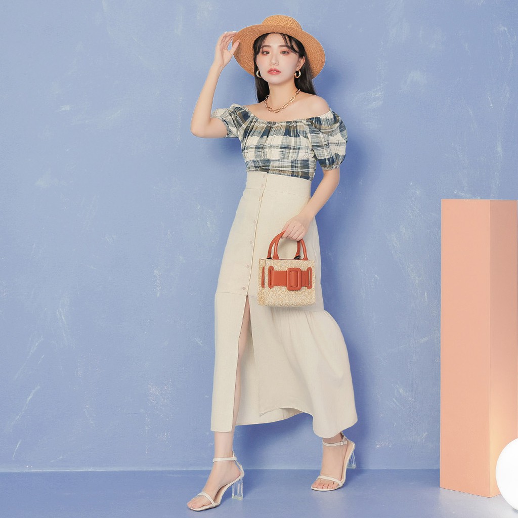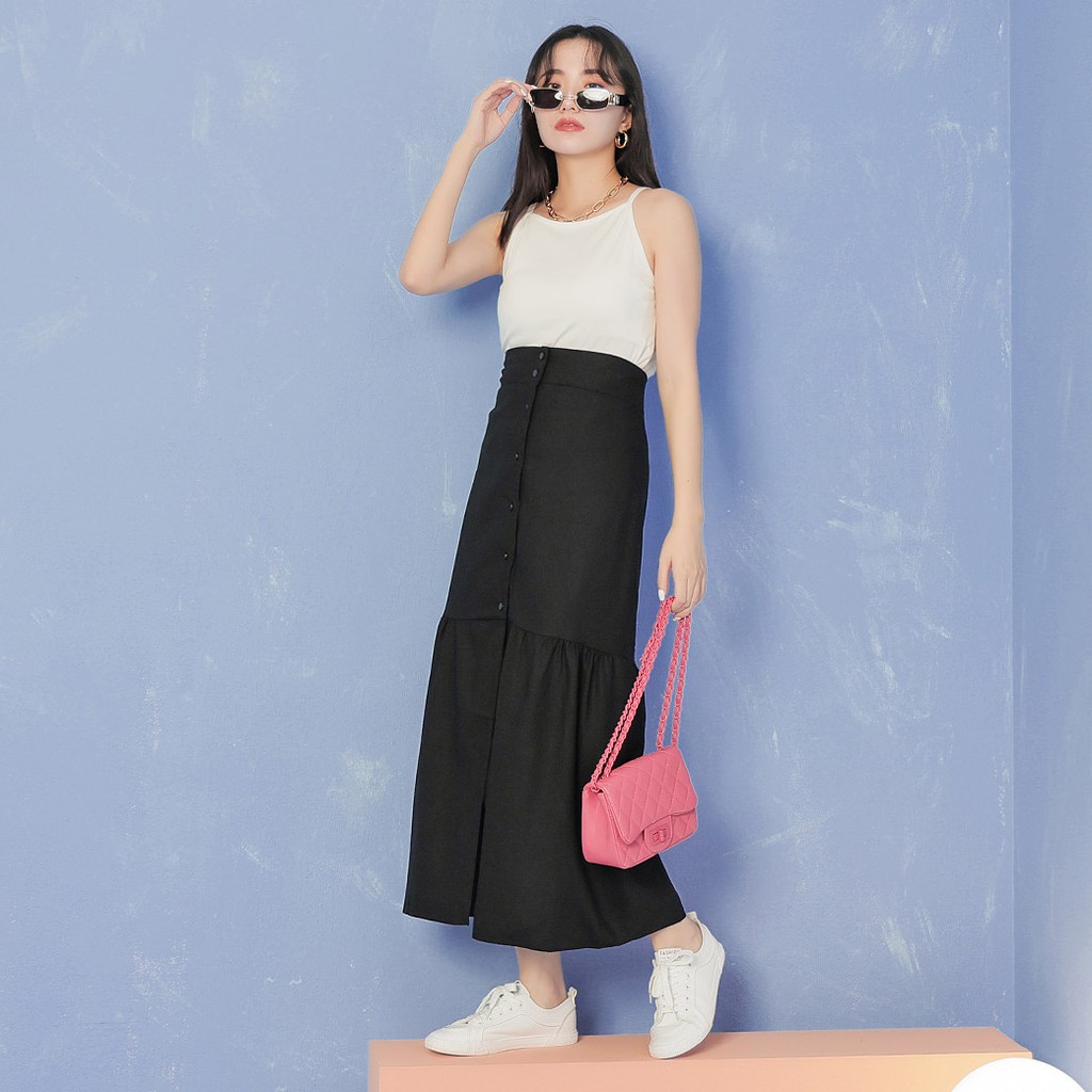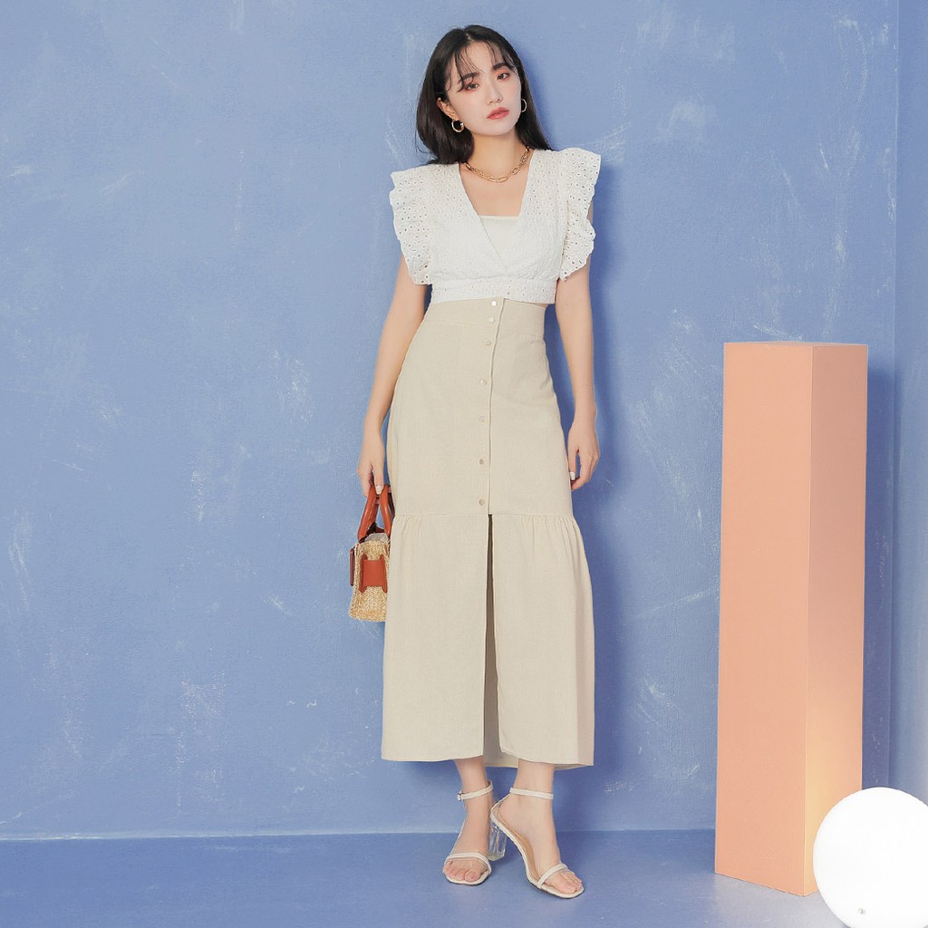IN SHOP 排釦棉麻魚尾長裙-共2色【KT21601】