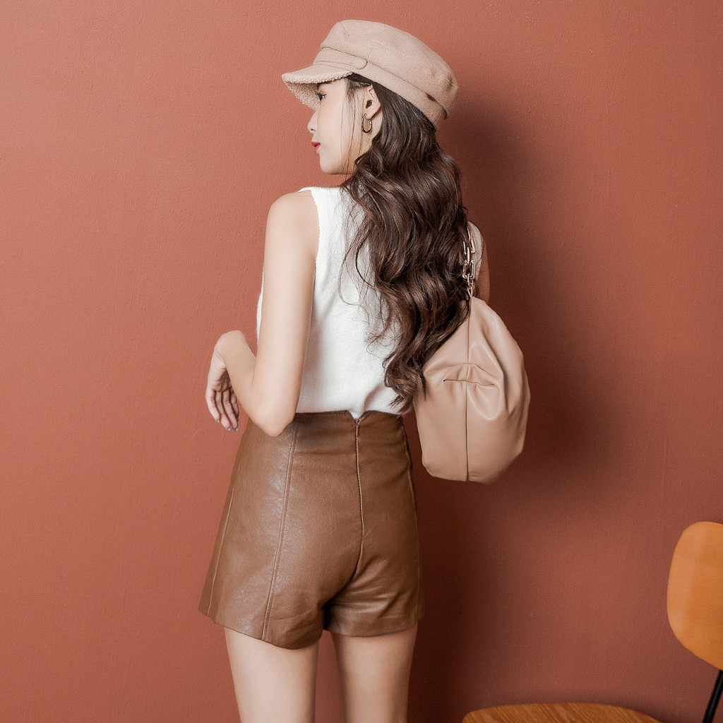 IN SHOP 縫線拼布皮革短褲(偏小)-共2色【KT20995】