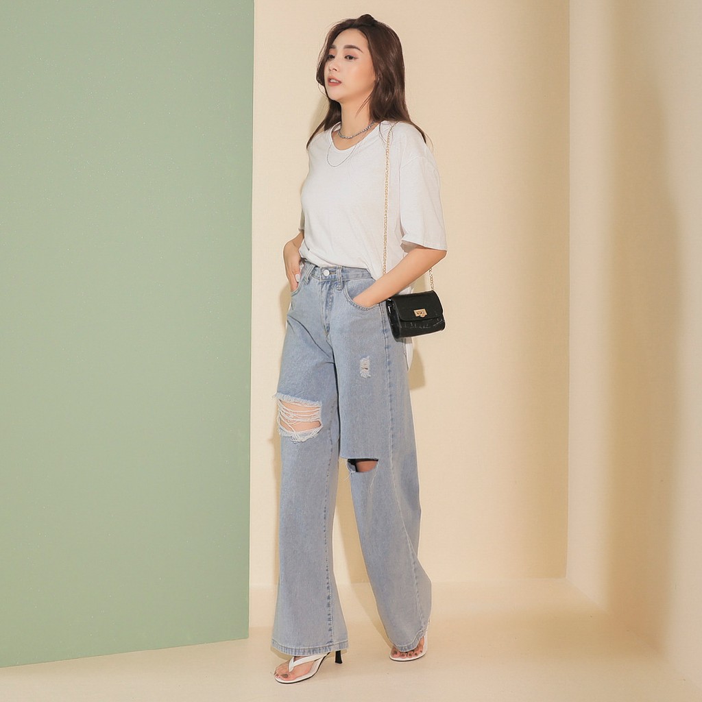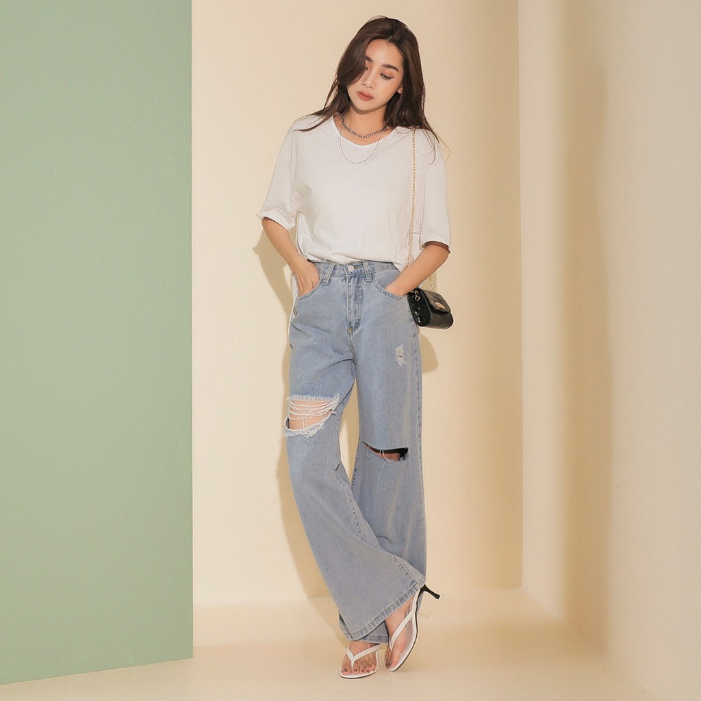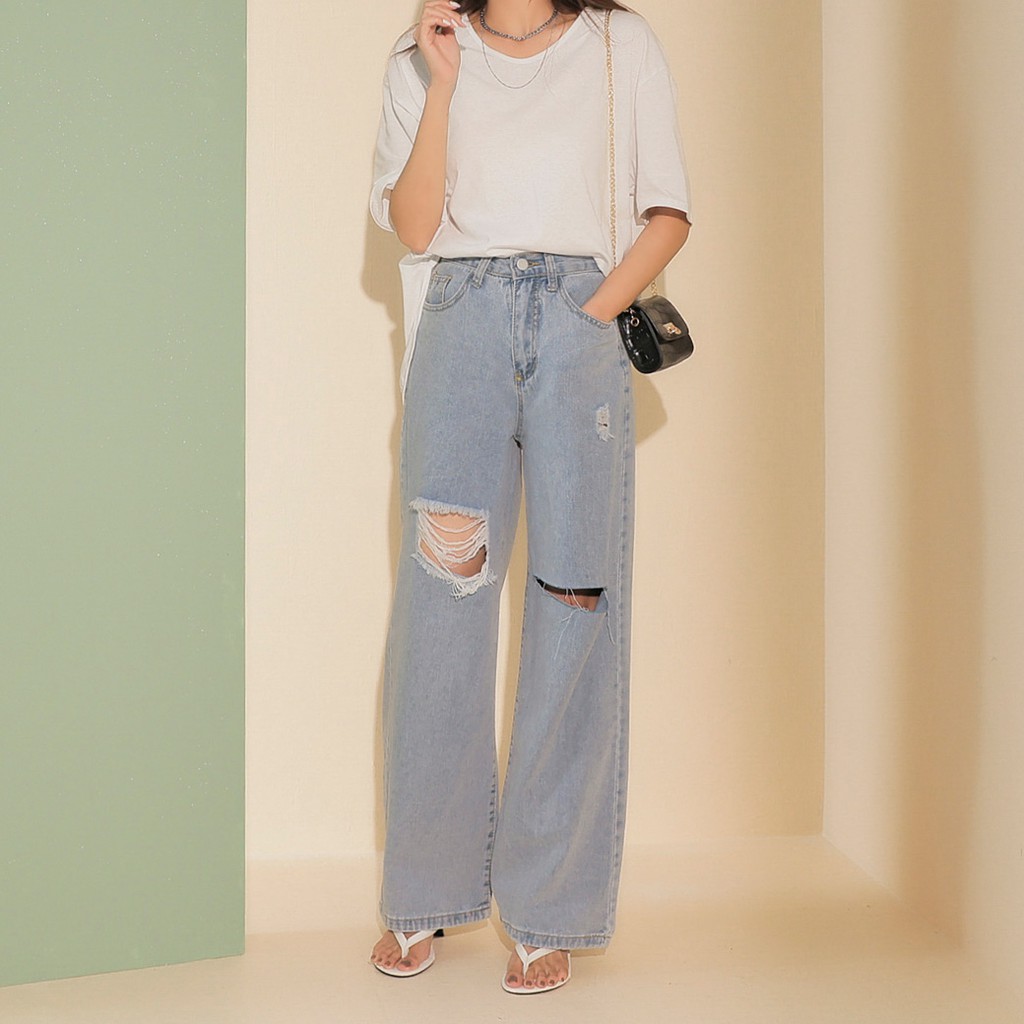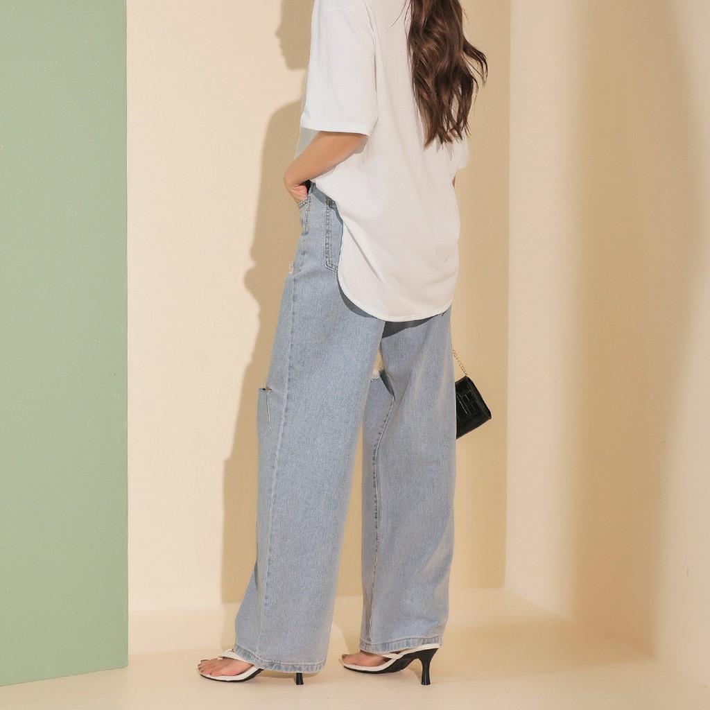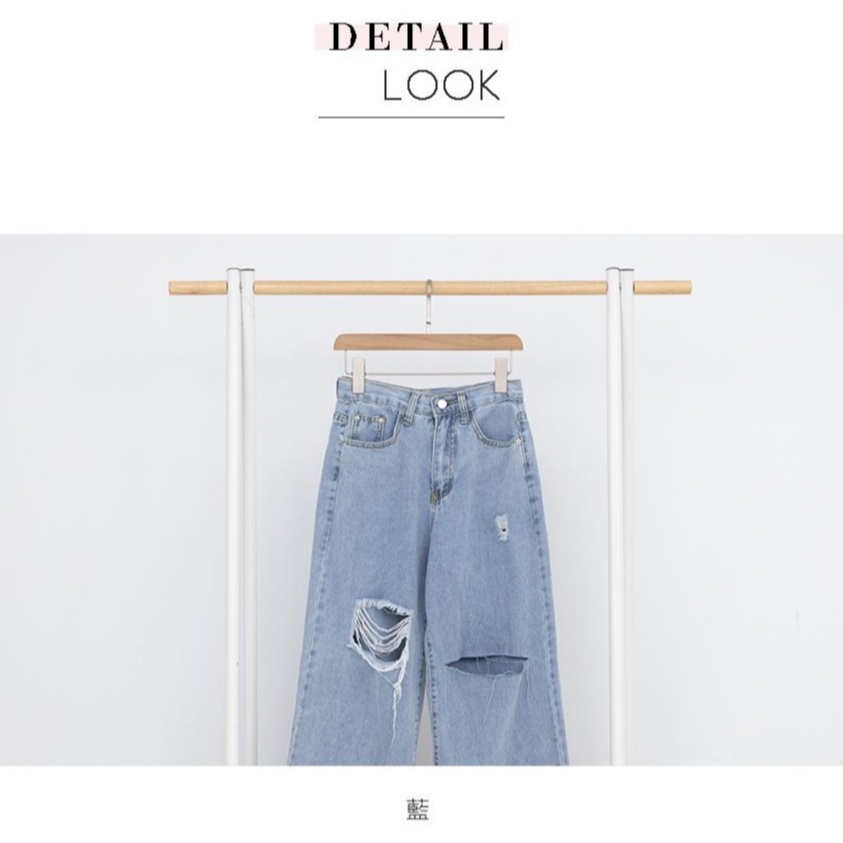 IN SHOP 膝破直筒牛仔寬褲【KT201041】