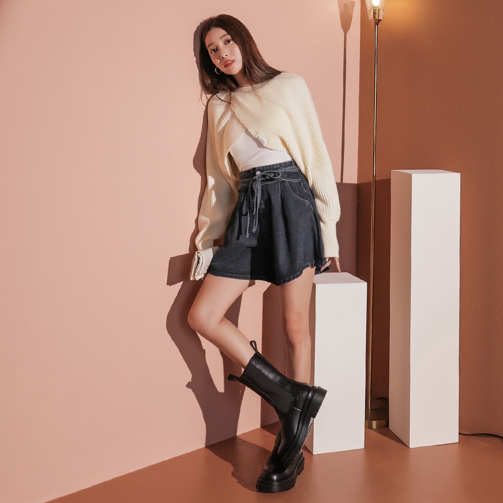 IN SHOP 綁帶打褶牛仔短褲-共2色【KT201113】